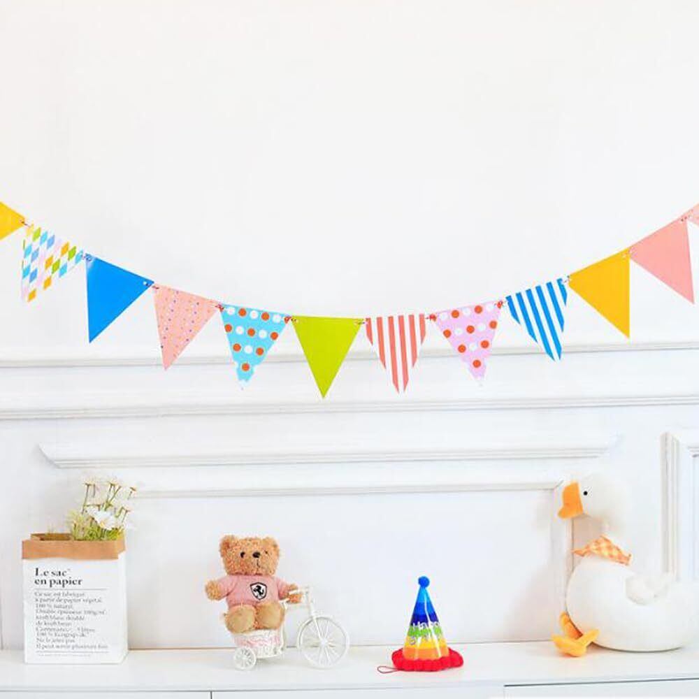 三角旗 カラフルフラッグ おしゃれ 人気 可愛い パーティー飾り 誕生日 結婚式 部屋飾り 壁飾り アウトドア 文化祭 運動会 三角の旗 5本セット 約5m長