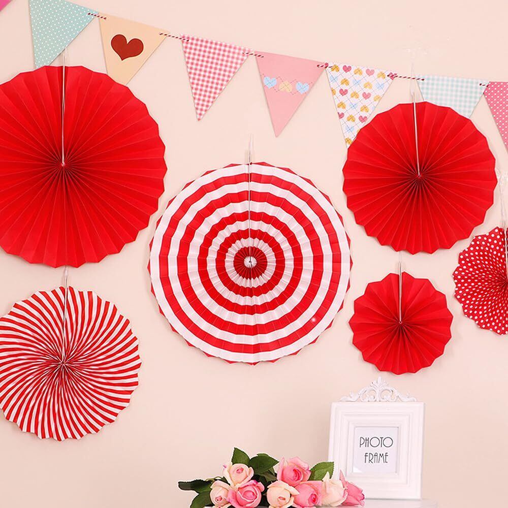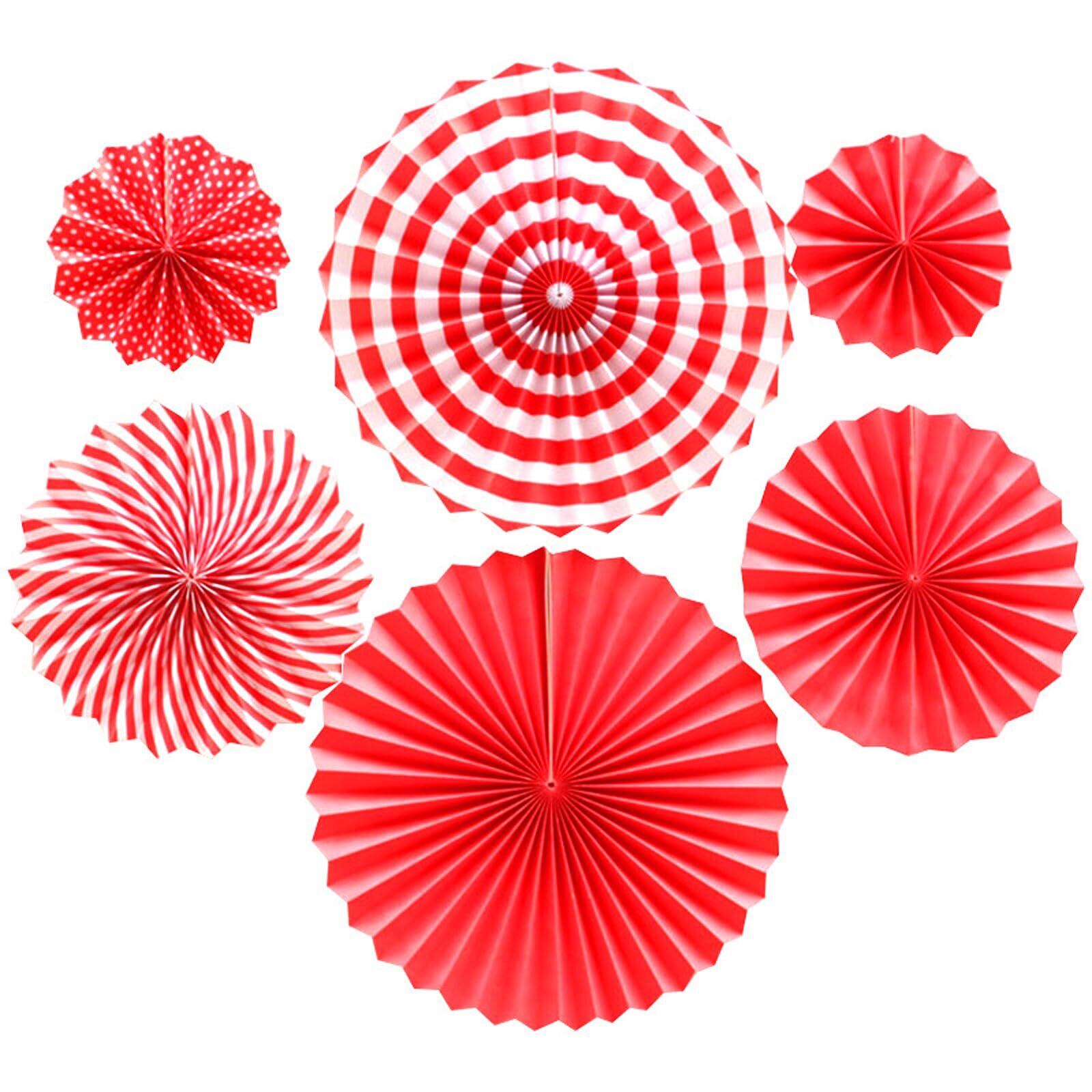 LIANHATA ペーパーファン 6個セット パーティー 装飾 3サイズ 扇子の組み合わせ デコレーション 記念日 バレンタイン 結婚式 お祝い お部屋の飾り つけ (赤)