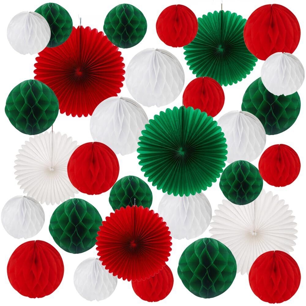 YFFSFDC クリスマス 飾り付けセット ハニカムボール ペーパーファン 30点入り クリスマス飾り ペーパーポンポン ペーパーフラワー パーティー デコレーション インテリア 装飾 緑/赤/白 お祝い