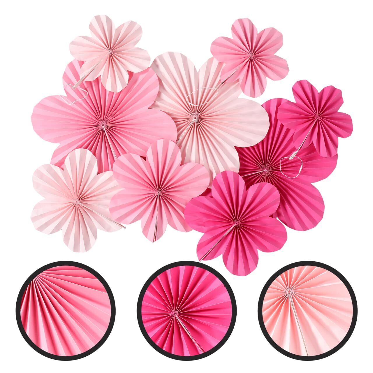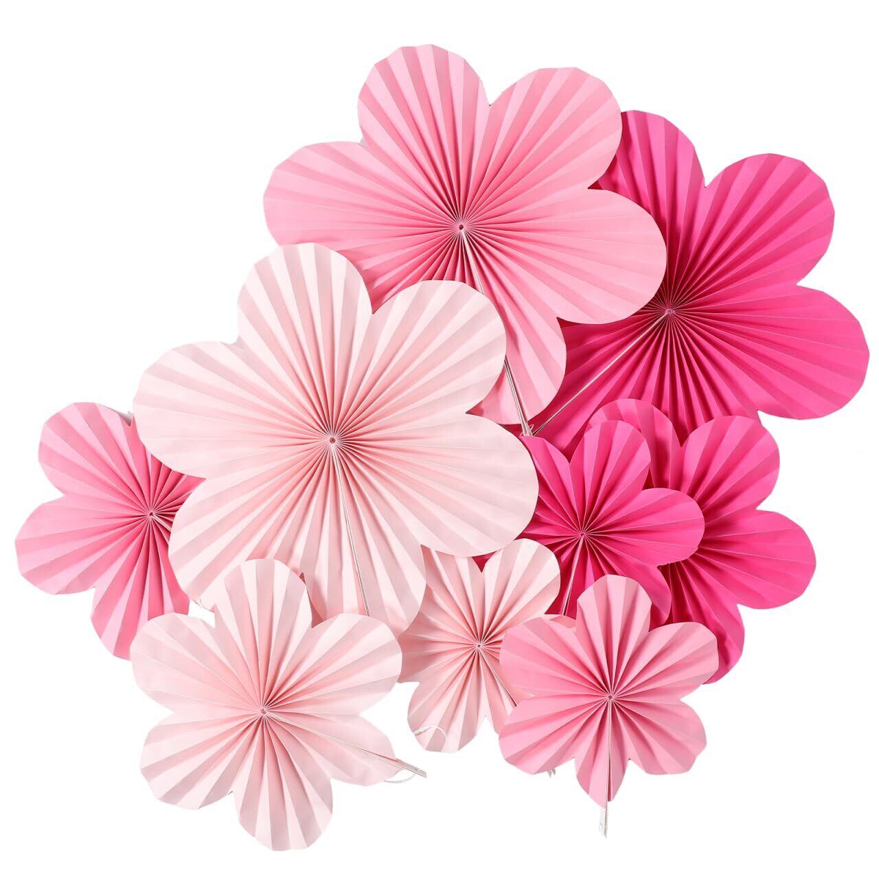FRCOLOR ピンクのペーパーファン装飾 9個セット 誕生日・結婚式・ベビーシャワー用 壁掛け・吊り下げデコレーション 花柄デザイン