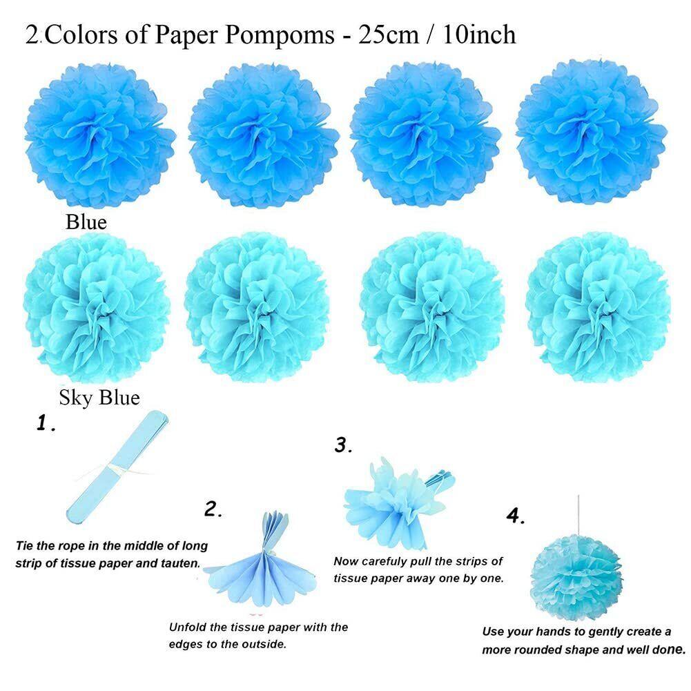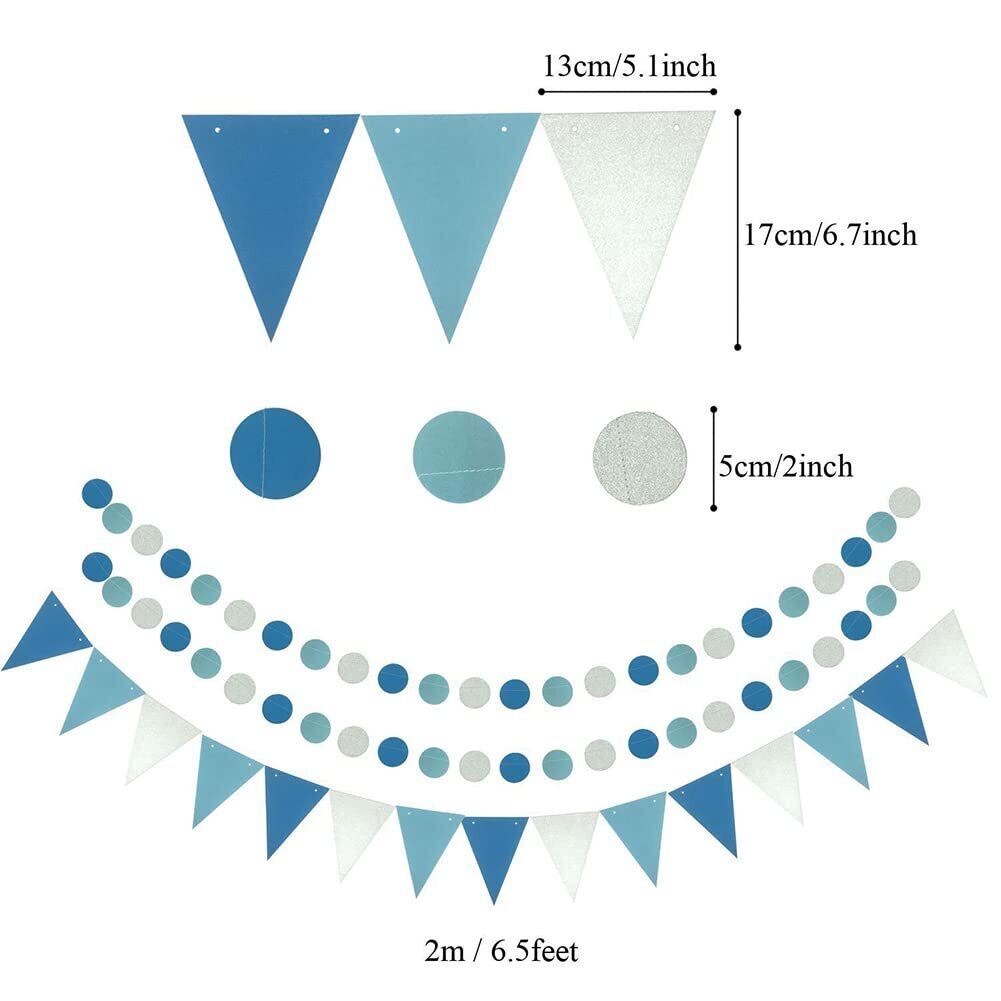 Yolrky ペーパーポンポン ペーパーファン フラッグガーランド 誕生日 パーティー 飾り付け 結婚式 祝い 記念日 (ブルー)