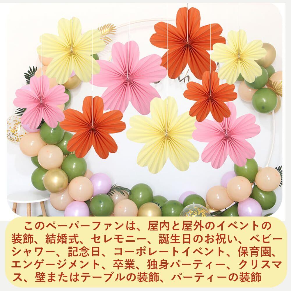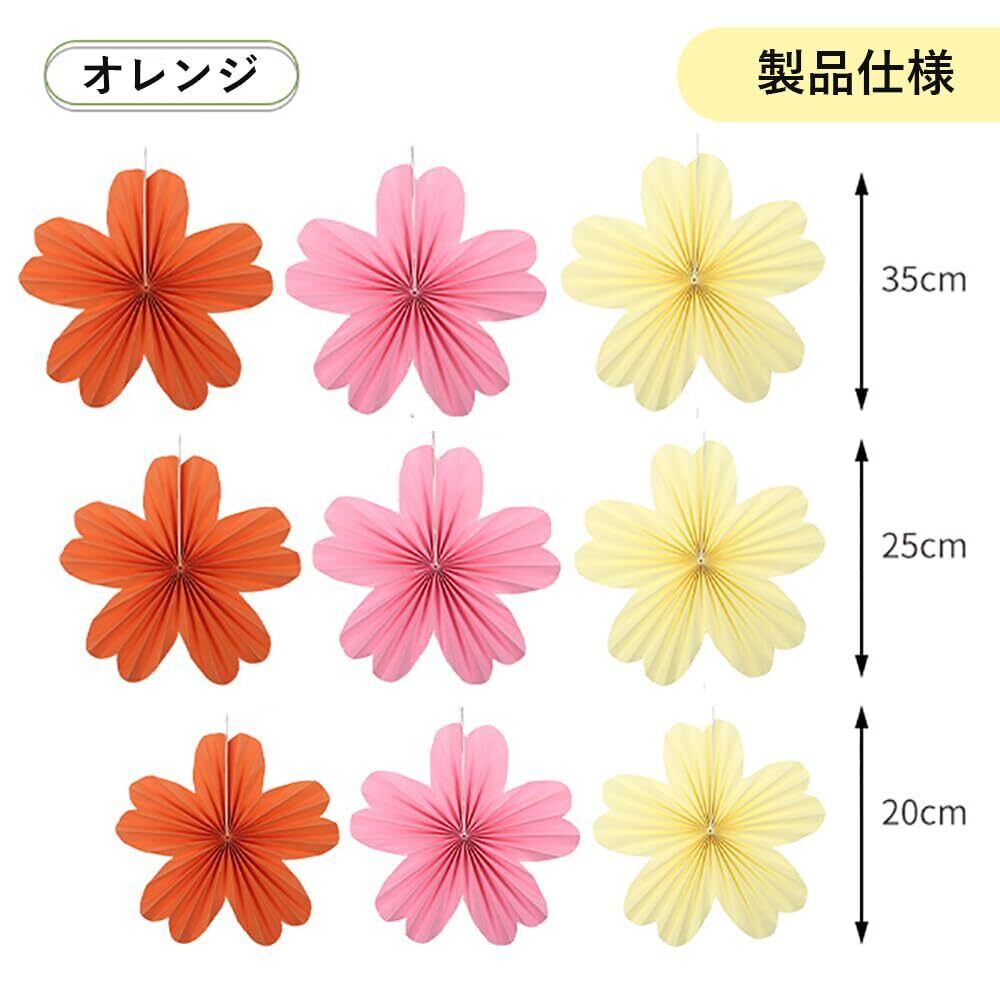 ペーパーファン 花型 9枚セット 桜の折り紙 ペーパーフラワー 花ポンポン 装飾 パーティー デコレーション 誕生日 記念日 店舗 室内 飾り付けセット (オレンジ)