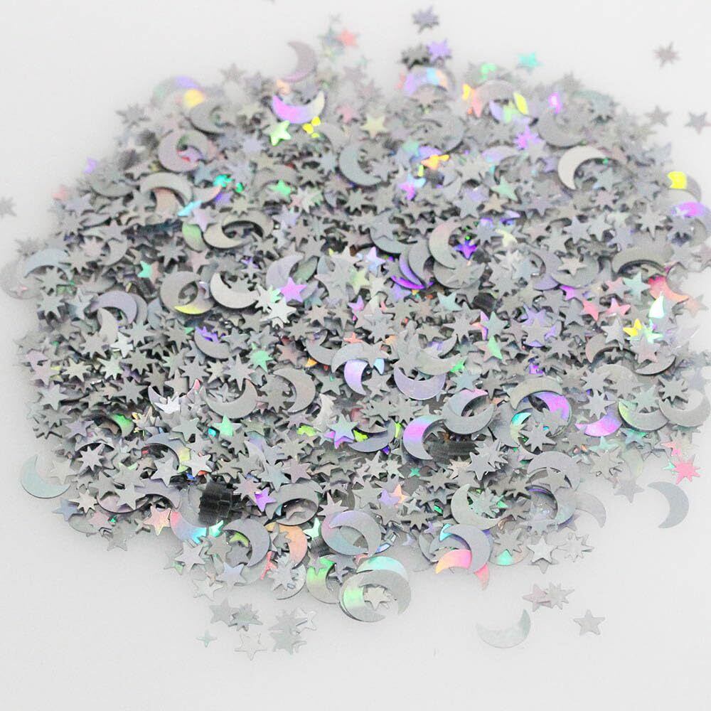 【サイズ】::月、五角星、四角星、八角星を含む4種類の卓上色紙くずがあり、月の色紙くずのサイズは1 cm、3種類の星の色紙くずのサイズは0.4 cmから0.8 cmで、異なる形状の組み合わせはより魅力的な視覚効果を創造することができます。