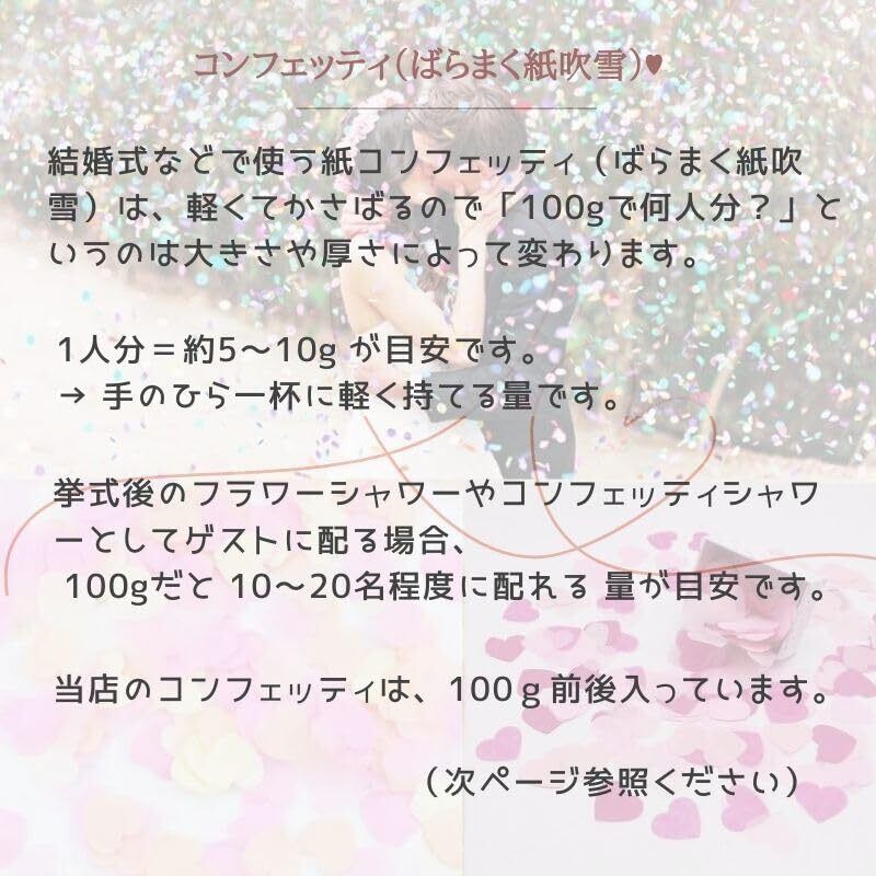 当店のコンフェッティは、1袋=100g前後入りです。