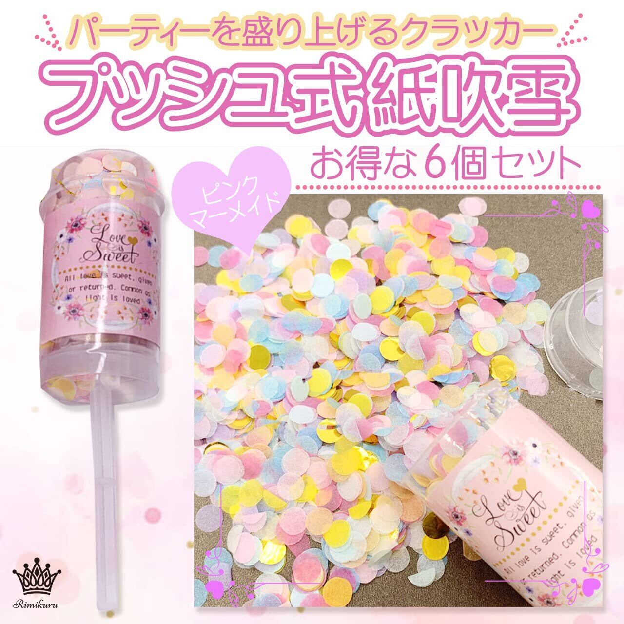 Rimikuru クラッカー パーティー 紙吹雪 桜 プッシュ式 フラワーシャワー 誕生日 ウェディング (ピンクマーメイド・6個セット)