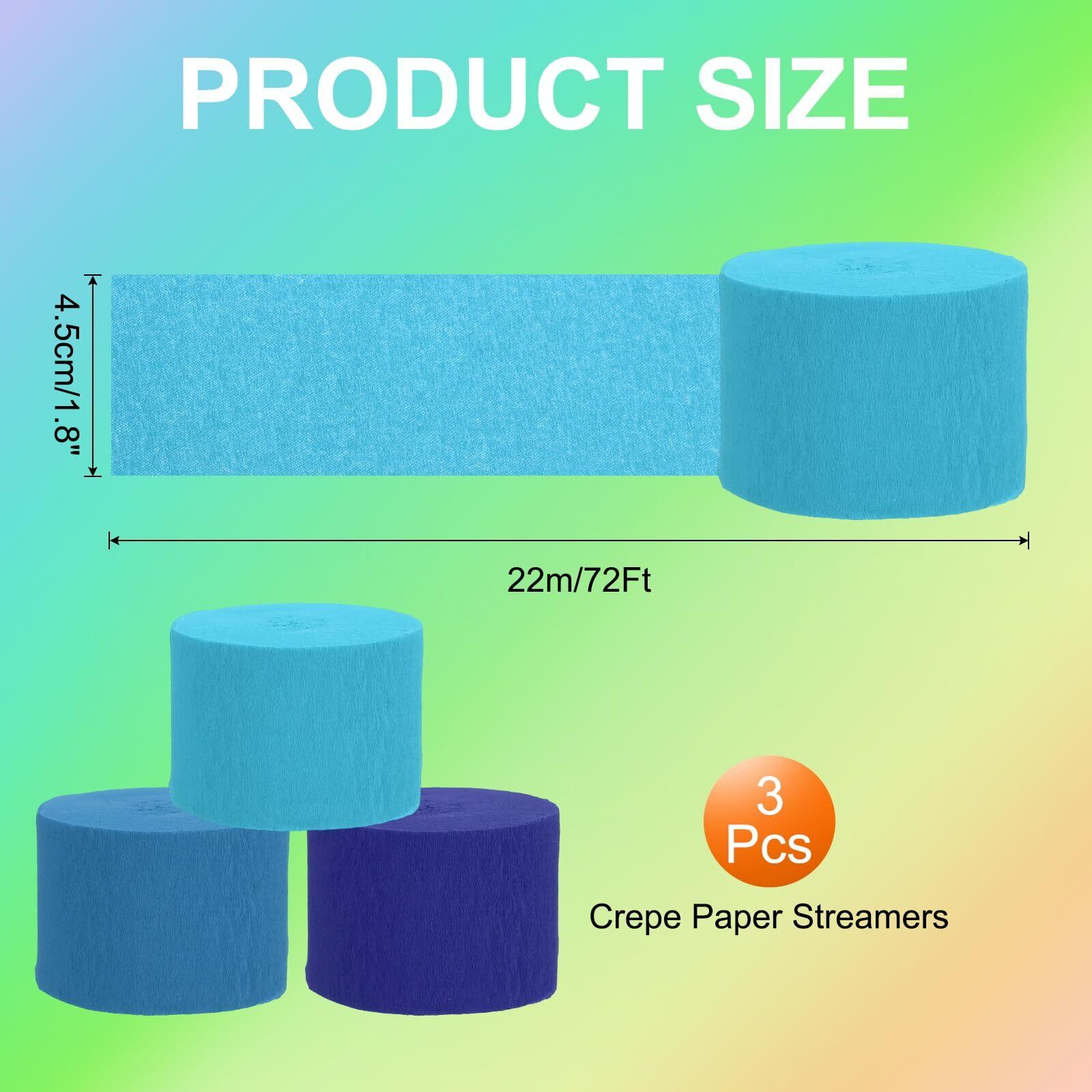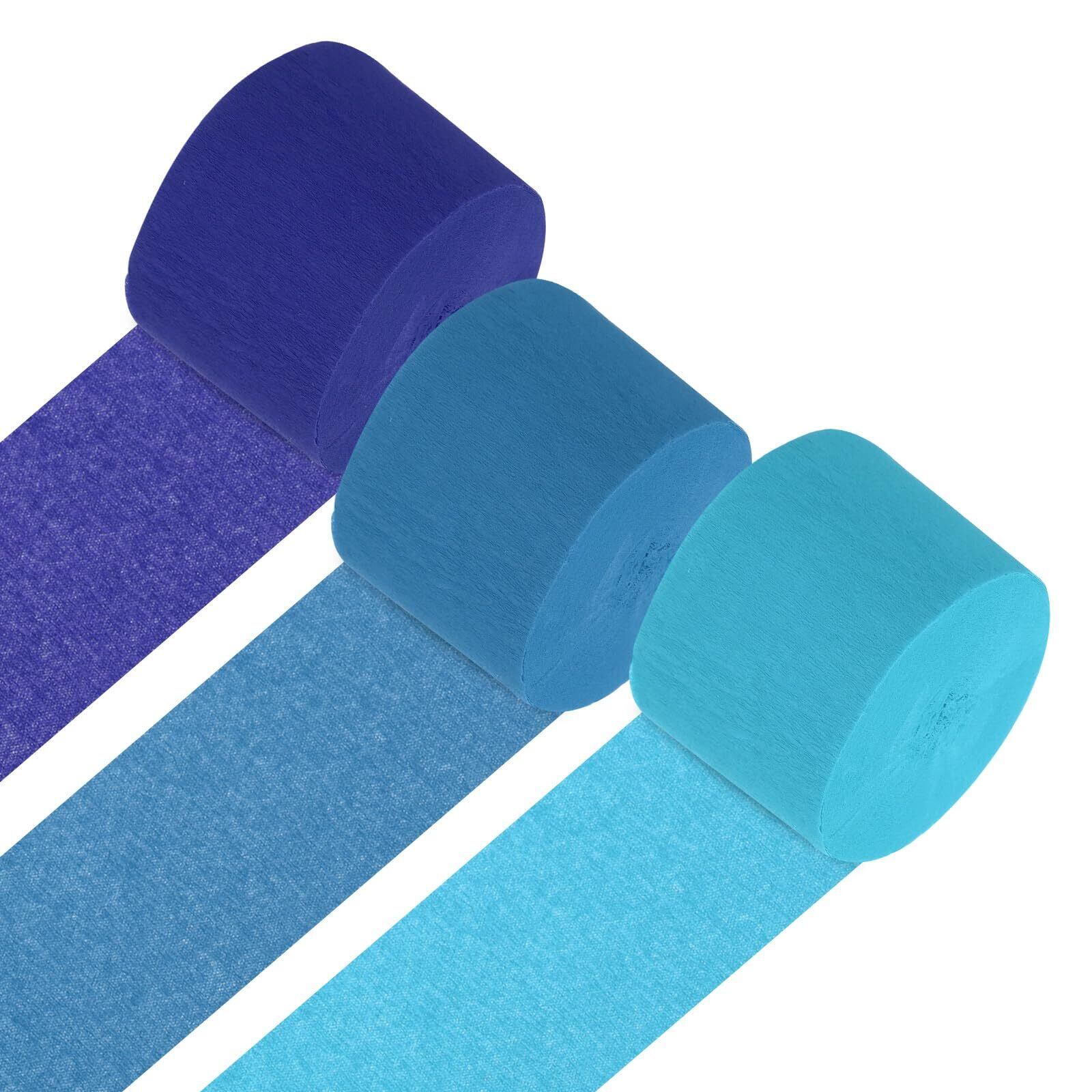 カラー:ダークブルー/ブルー/ライトブルー;素材:紙;寸法:22メートル x 4.5センチメートル / 72フィート x 1.8"(長さ×幅);パッケージリスト:3ロール x クレープペーパーストリーマー