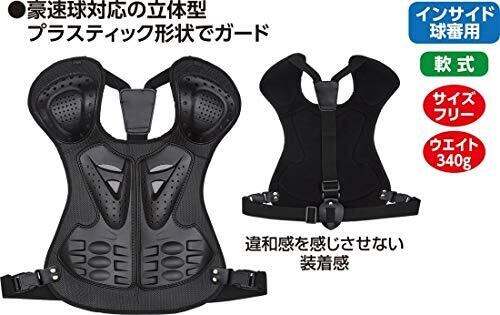 「こちらの『ハイゴールド チェストプロテクター ブラック フリー ISE-1998』は、軟式審判用に特化された高機能チェストプロテクターです!優れた素材とデザインにより、プレイヤーの保護と快適性を両立させています。」
