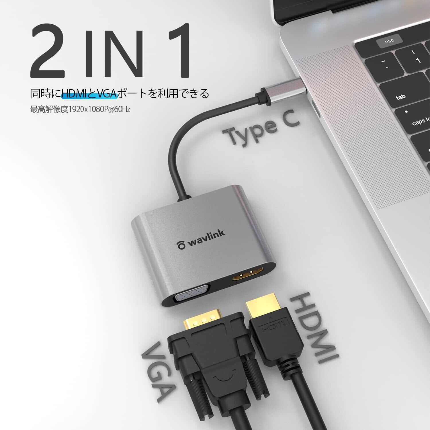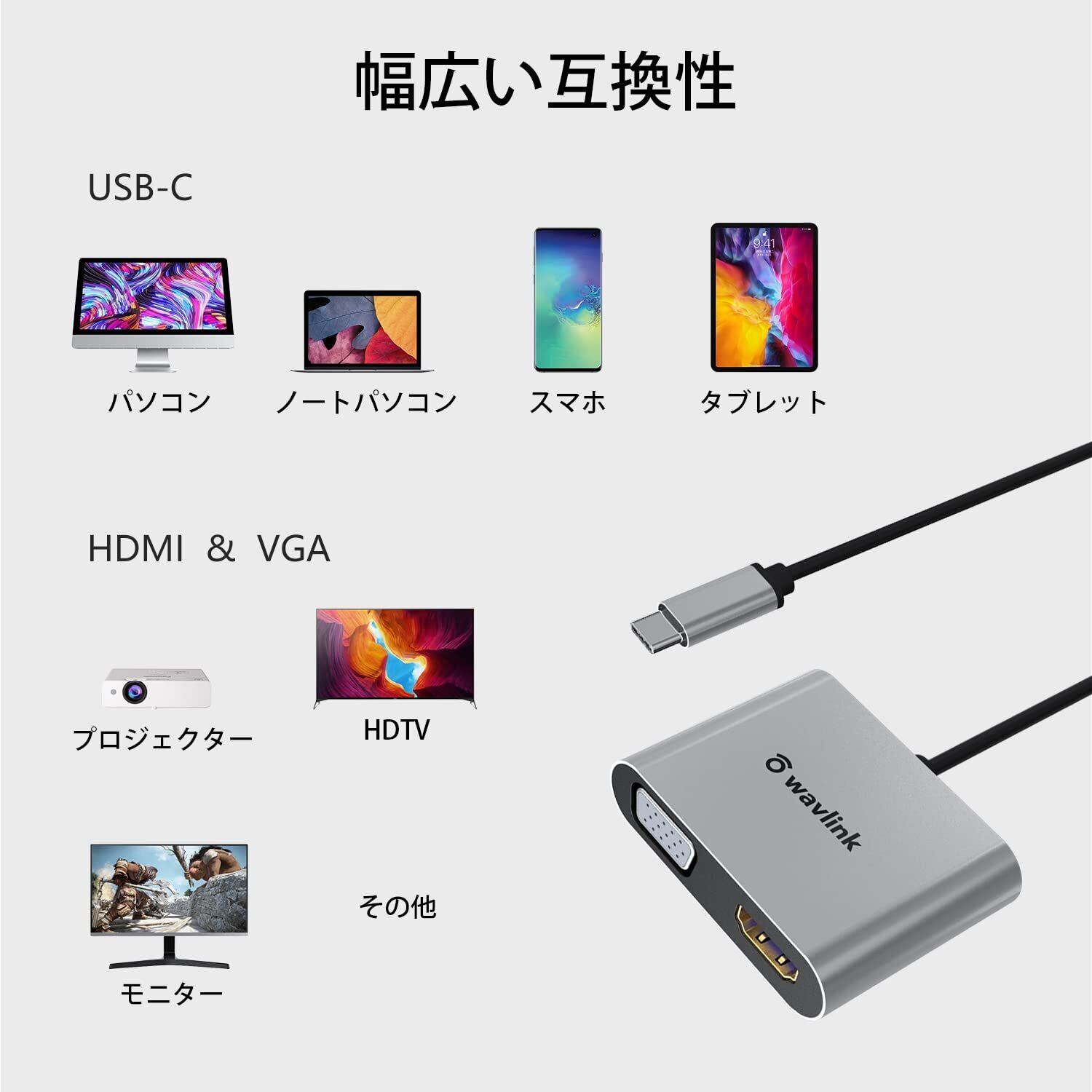 WAVLINK USB C-HDMI VGA 変換アダプタ 4K@60Hzプラグアンドプレイ USB-C-変換ケーブ ル コンバーター ノートパソコン/タブレット/スマホと互換性ある Windows/Mac OS/Linux/iPad OS/Androidに対応 USB-Cポート動画出力サポート必要