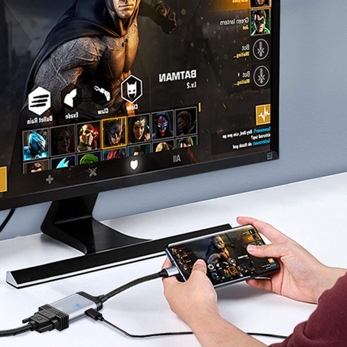 USB-C Type C - VGA RGBコンバーター HDTVアダプター 60hz 1080p メスPD電源ポート付き 充電ケーブルをUSB-Cポートに接続してノートパソコンを充電することもできます。