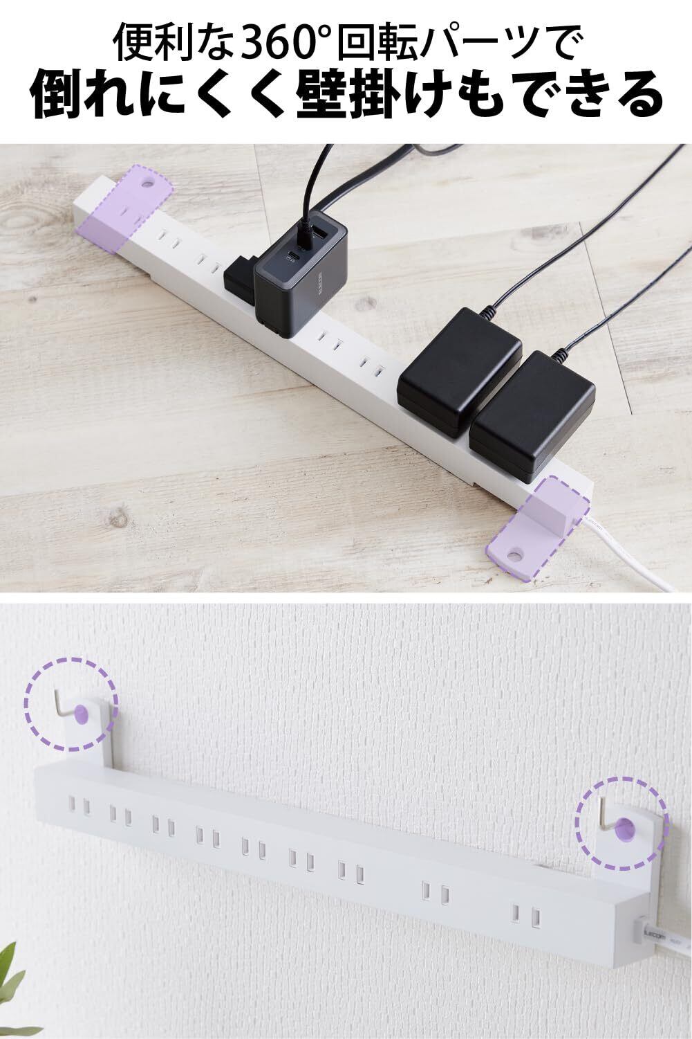 エレコム 電源タップ 10個口 2m 雷ガード ほこりシャッター 【 マグネット 回転脚パーツ 吊り穴 】 スイングプラグ ブラック ECT-2620WH