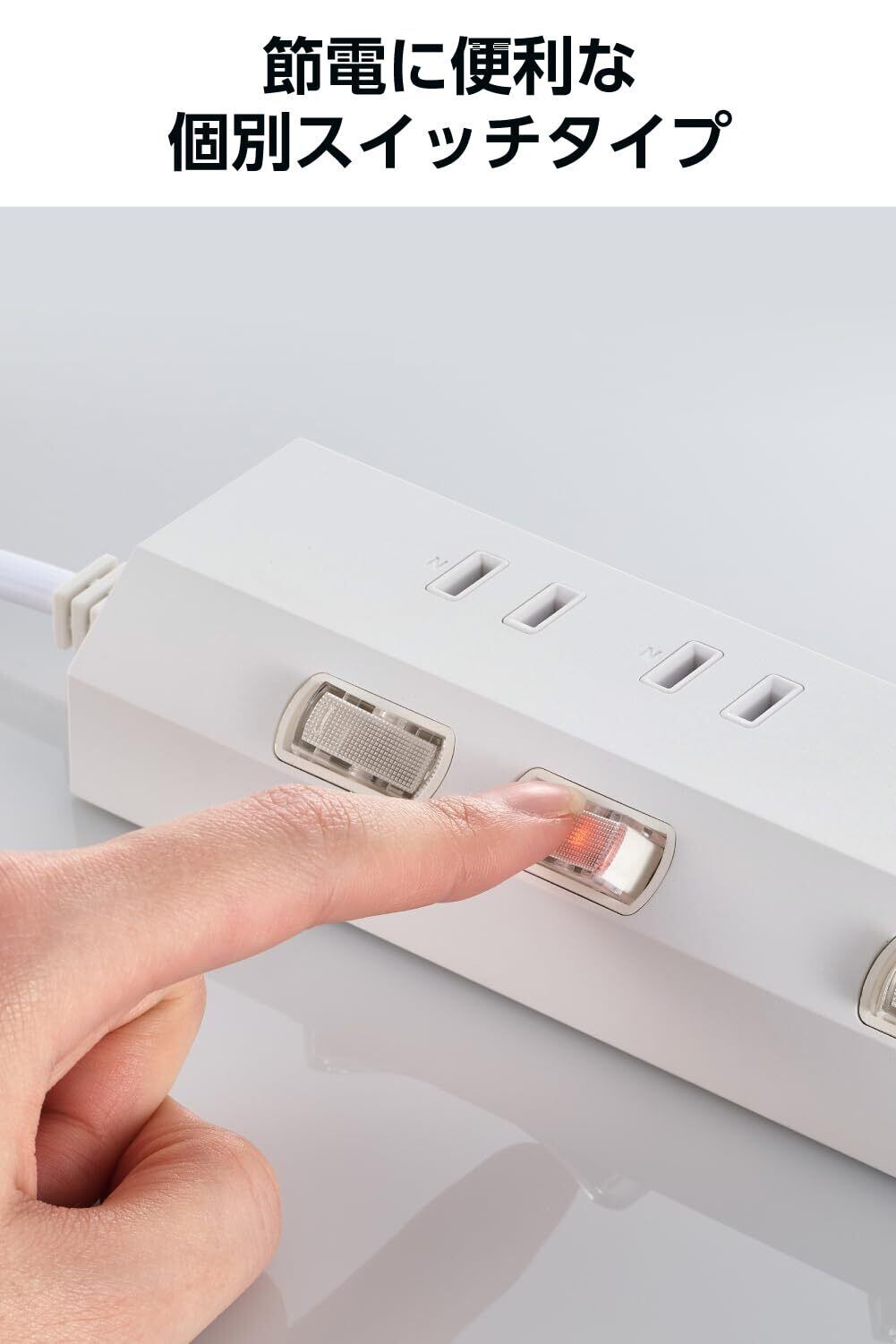 ■個別スイッチで差込口ごとに、電源のON/OFFの切り替えができます。接続機器の電源がOFFの状態でも電力を消費する待機電力を削減し、電気代の節約に役立ちます。