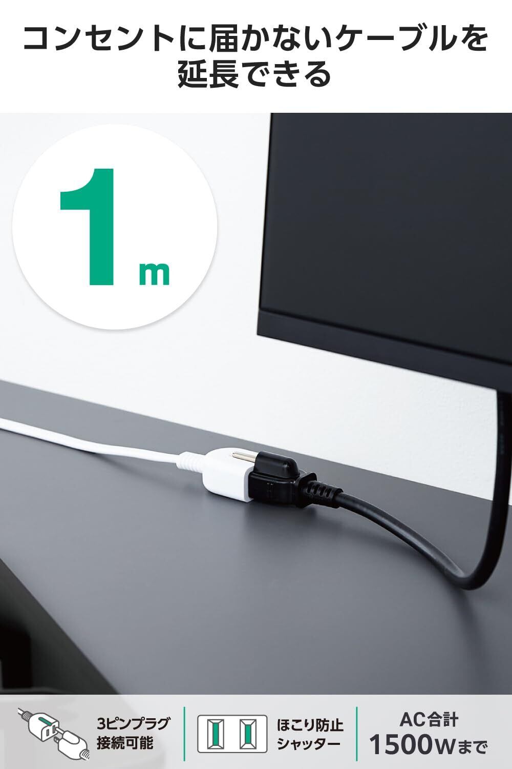 エレコム 電源タップ 延長コード 1m 1口 ほこり防止シャッター付き 極性対応 (N極) 3ピンプラグ接続可能 スイング式プラグ採用 熱硬化性樹脂採用 ホワイト ECT-4210WH