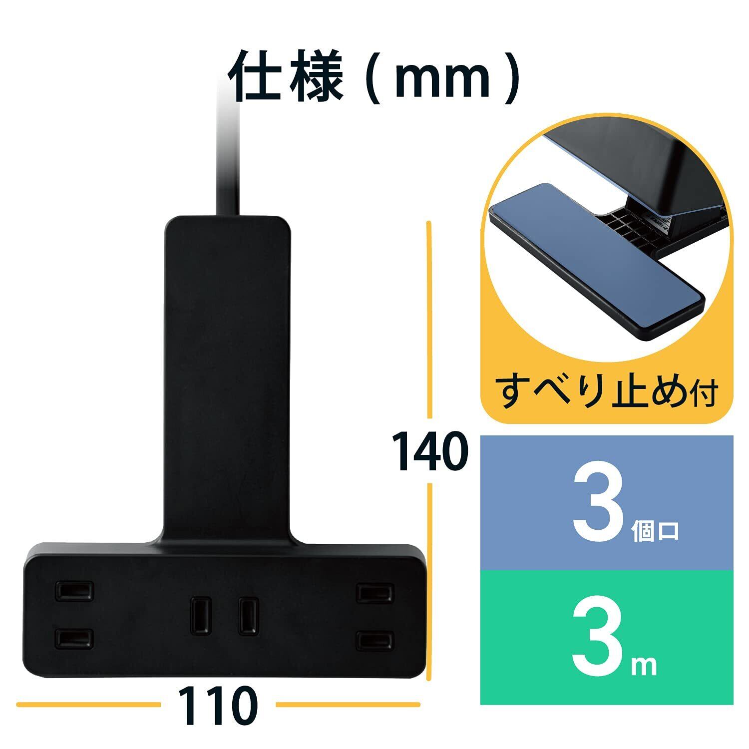 - 3個のコンセント口で多様なデバイスに対応!