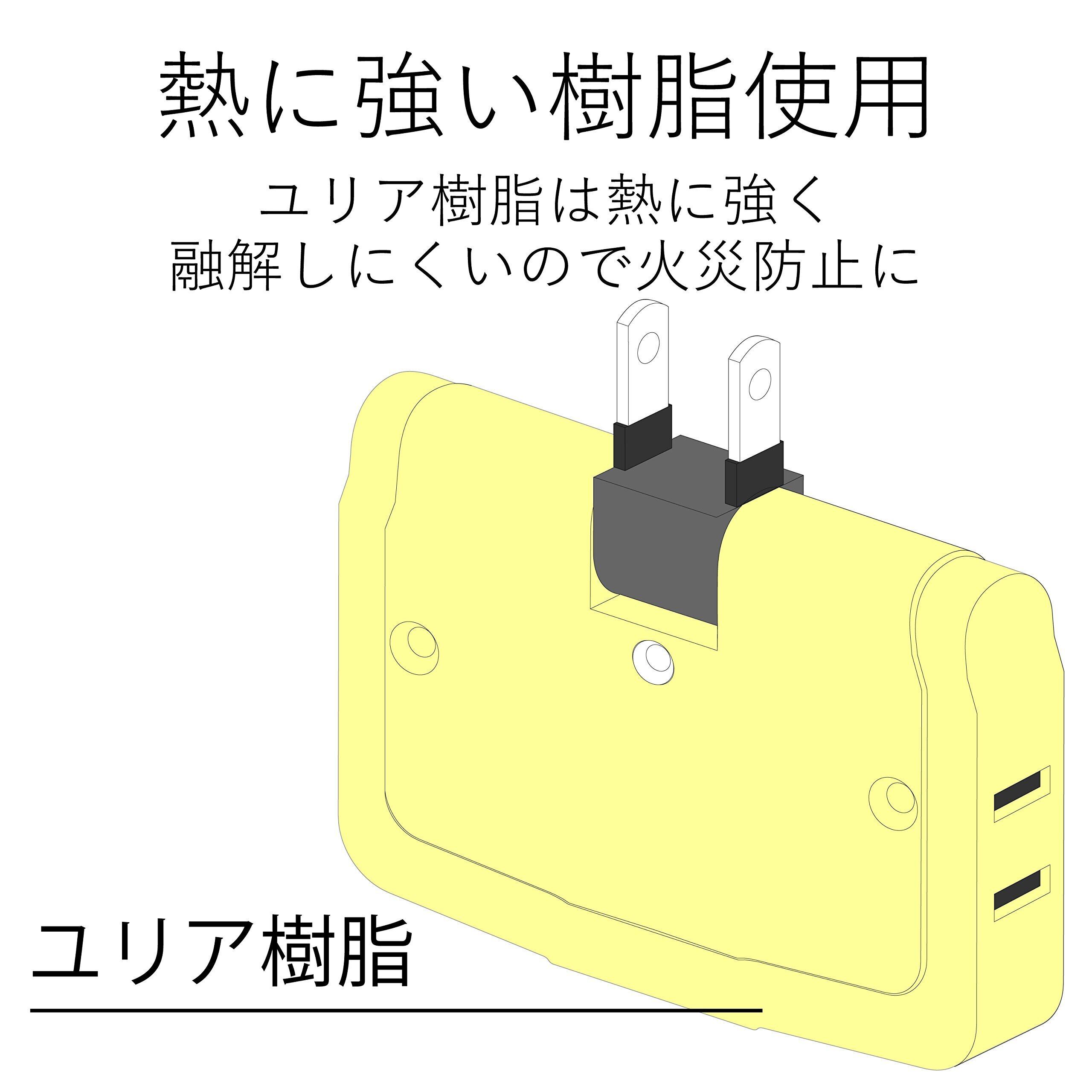 「雷ガード機能を搭載しており、大切な電子機器を雷による過電圧から守ります。さらに、安心のほこり防止シャッターにより、未使用時でも差込口を清潔に保つことができます。」