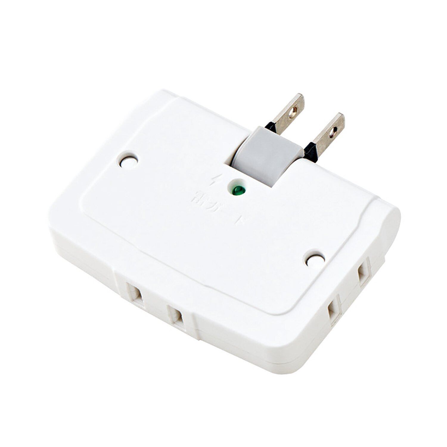 雷サージから電子機器を守る、雷ガード機能を搭載。1つのコンセントから3口に電源を分配することができる雷ガード付きトリプルタップ。