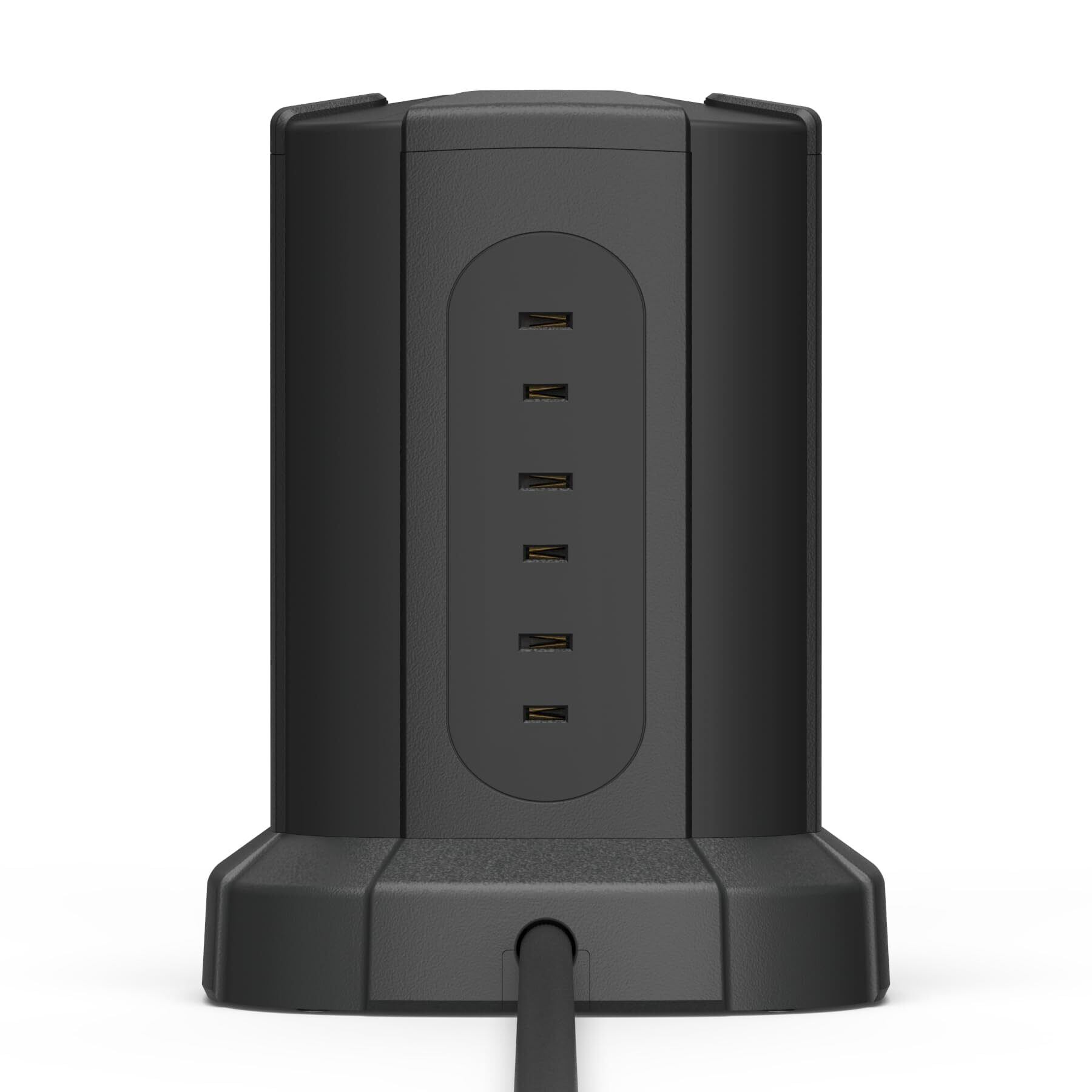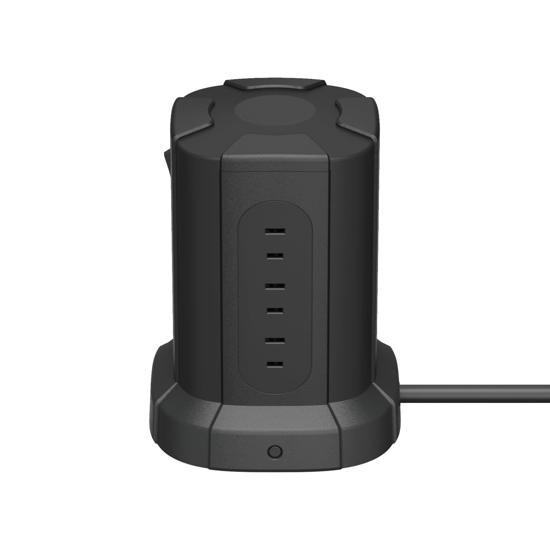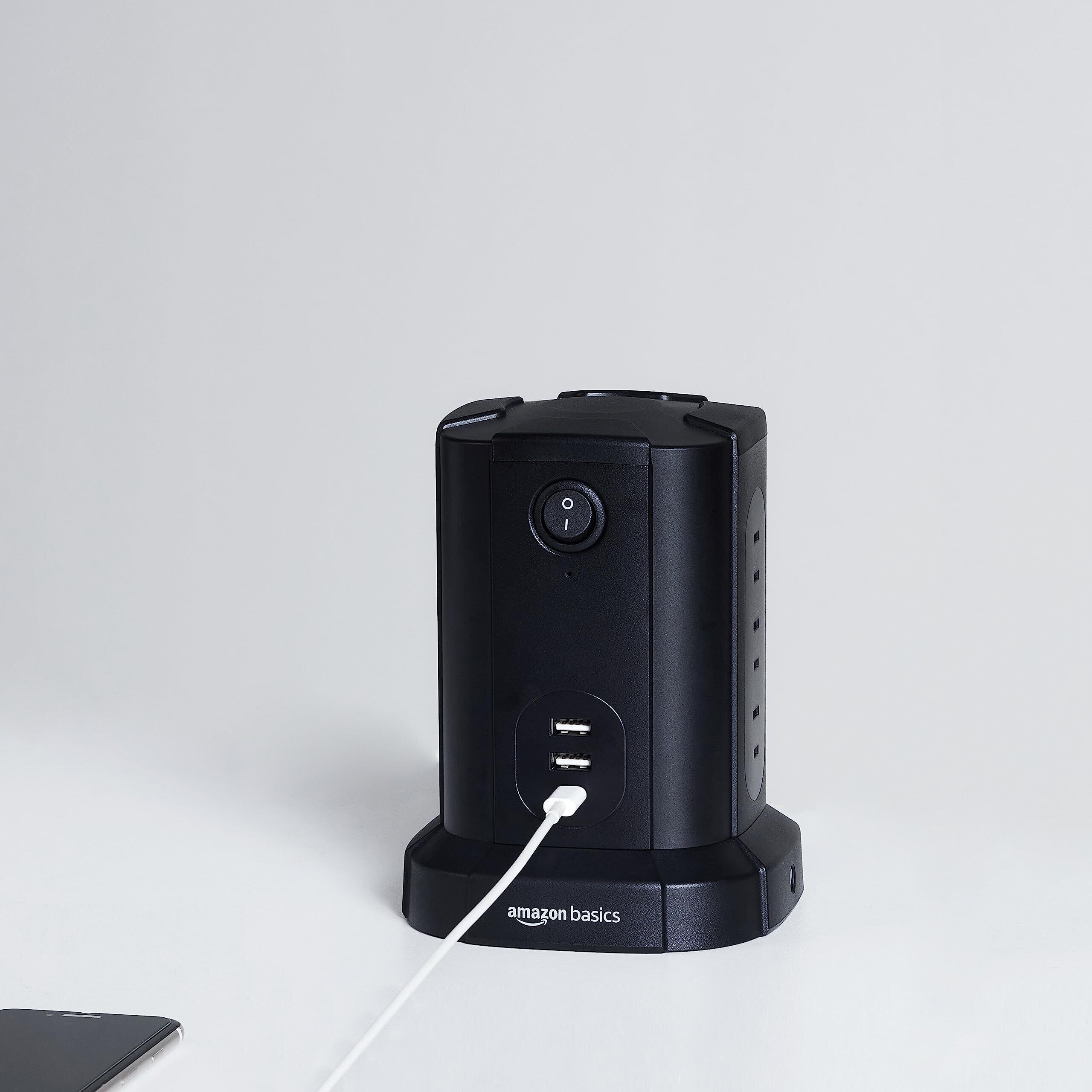 「この『ベーシック 八角形 電源タップタワー』は、効率的でスタイリッシュなデザインが魅力の多機能電源タップです!8つの側面にACコンセントを配置し、コンパクトながらも非常に多くのデバイスを同時に充電可能です。」
