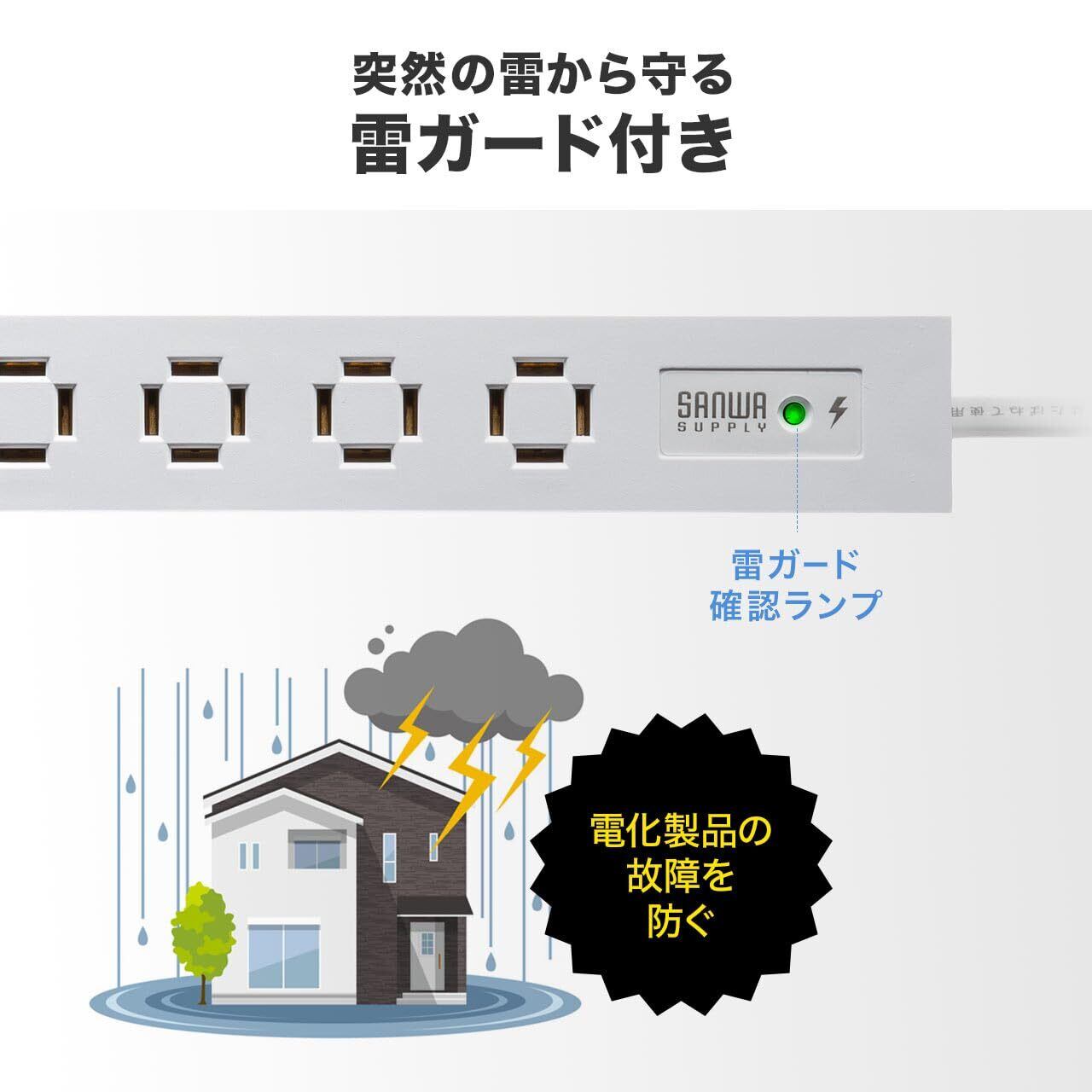 「雷ガード機能を内蔵しており、突発的な雷サージから大切な電子機器をしっかりと保護します。この安心感は、特に大事な機器をお使いの方に最適です!」
