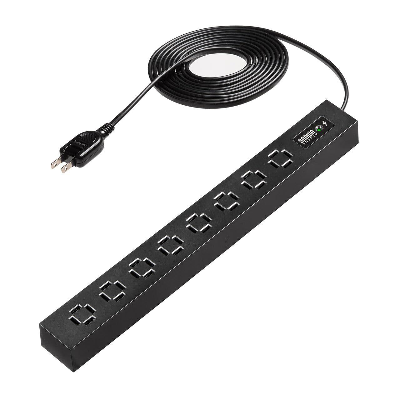 「この『サンワダイレクト 電源タップ』は、充実した機能とスタイリッシュなデザインを兼ね備えた、高性能な電源タップです!8つのAC差込口を備えており、複数のデバイスを同時に接続することができ、家庭やオフィスでの使い勝手が向上します。」