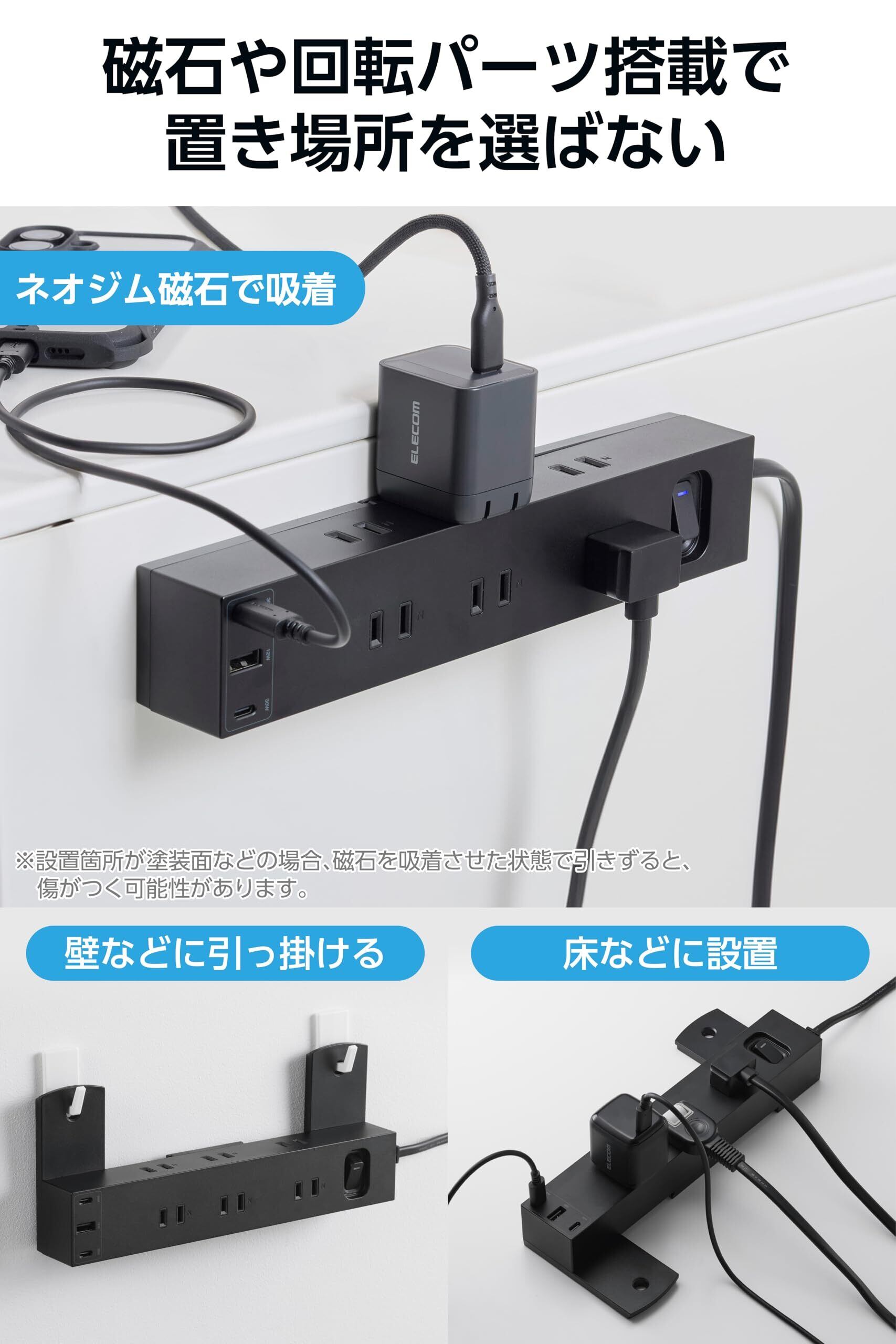 「この『エレコム 電源タップ』は、効率的な電源管理を実現する多機能な電源タップです!6つのコンセント口に加え、USB接続ポートを3つ搭載し、さまざまなデバイスを同時に充電・接続できます。」