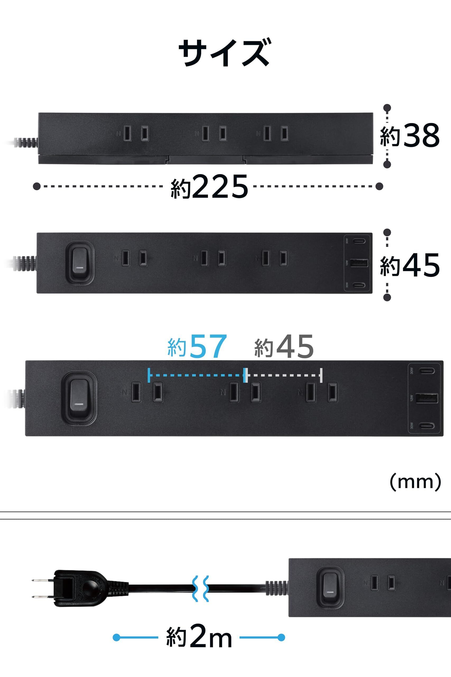 ■外形寸法:幅約225mm×奥行約45mm×高さ約38mm ※本体のみ(ケーブル突起部を除く)