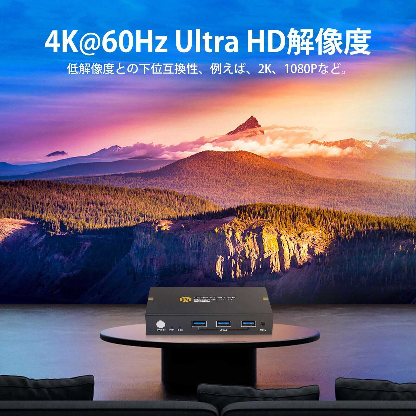 「この『USB3.0 KVMスイッチ』は、2台のPCを1つのモニターで管理できる非常に便利なデバイスです!4K@60Hzの高解像度に対応し、パソコンの利用をより快適にします。ボタン一つで簡単に切り替えが可能で、デスク周りをスッキリ保ちながら、両PCをスマートに操作できます。」