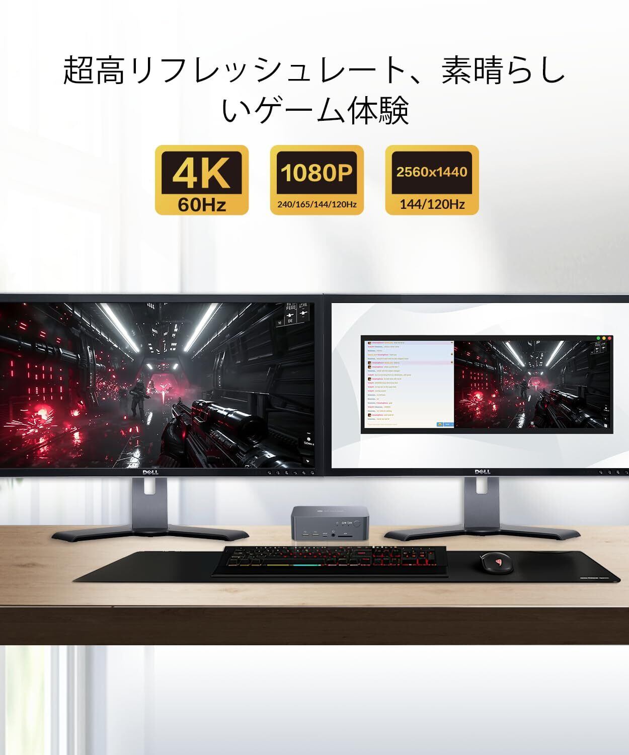 「本製品は4K@60Hz、2K@144Hz、1080P@240Hzに対応していますので、優れた映像クオリティを実感できます。作業時やゲームプレイ時に、ストレスのない滑らかな映像を提供し、あなたのイメージをそのまま再現します!」