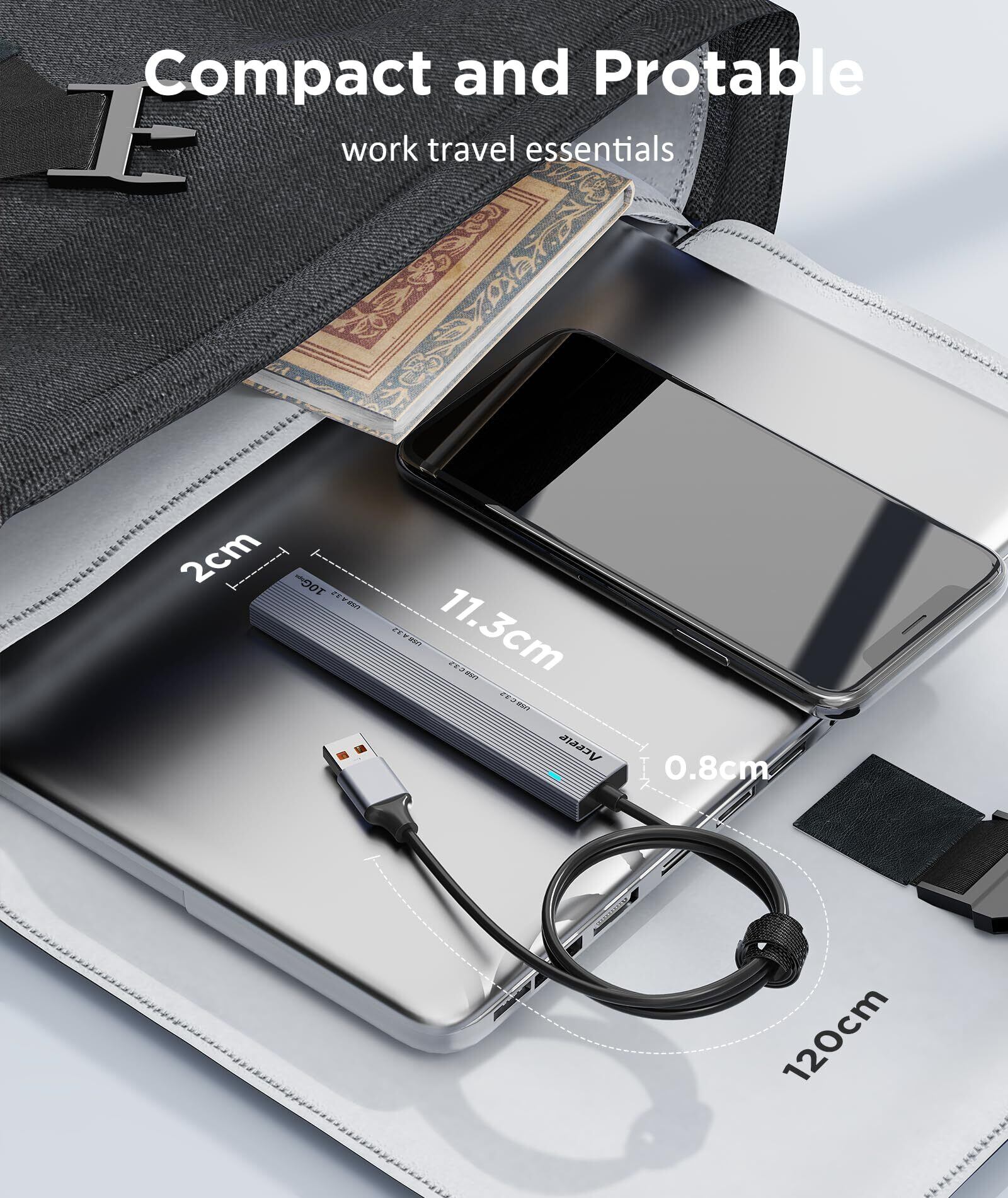 【スリムで軽量 1.2Mケーブル付き】Aceele USBハブはスリムで軽量なデザインを採用しています。旅行や出張にも簡単に持ち運べます。そして、収納スペースを取らず財布、ポケットまたはバックパックのコンパートメントにも簡単に収納可能で、負担になりません。ケーブルは最大120cmまで延長でき、配線が短いハブより環境への適応性が高いです。付属の結束バンドを使って快適で最適な長さに調節できます。