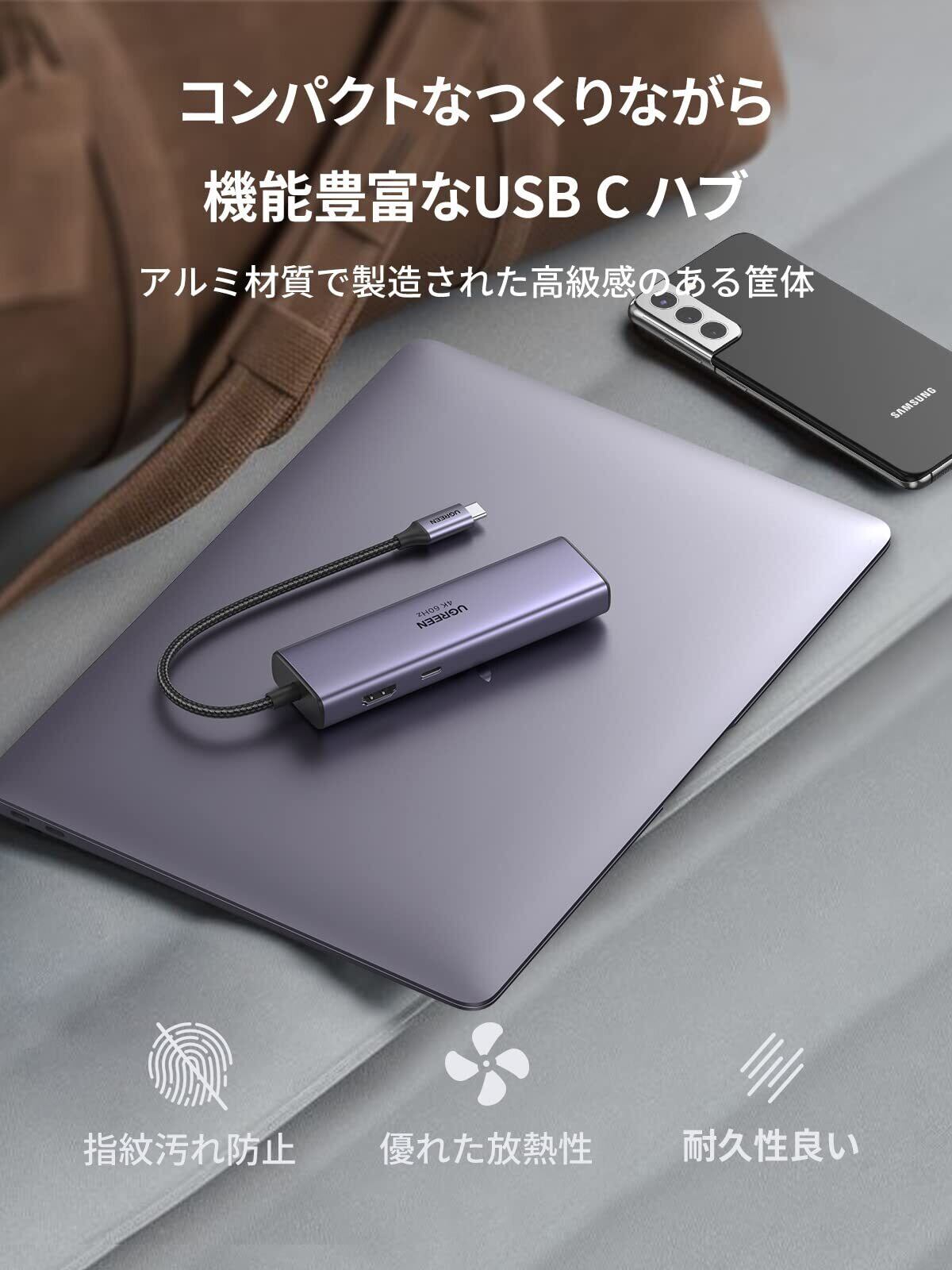 **UGREEN Revodok 107 USB Cハブ 7-IN-1 USB3.0ハブ 4K@60Hz HDMI出力 100W PD急速充電**