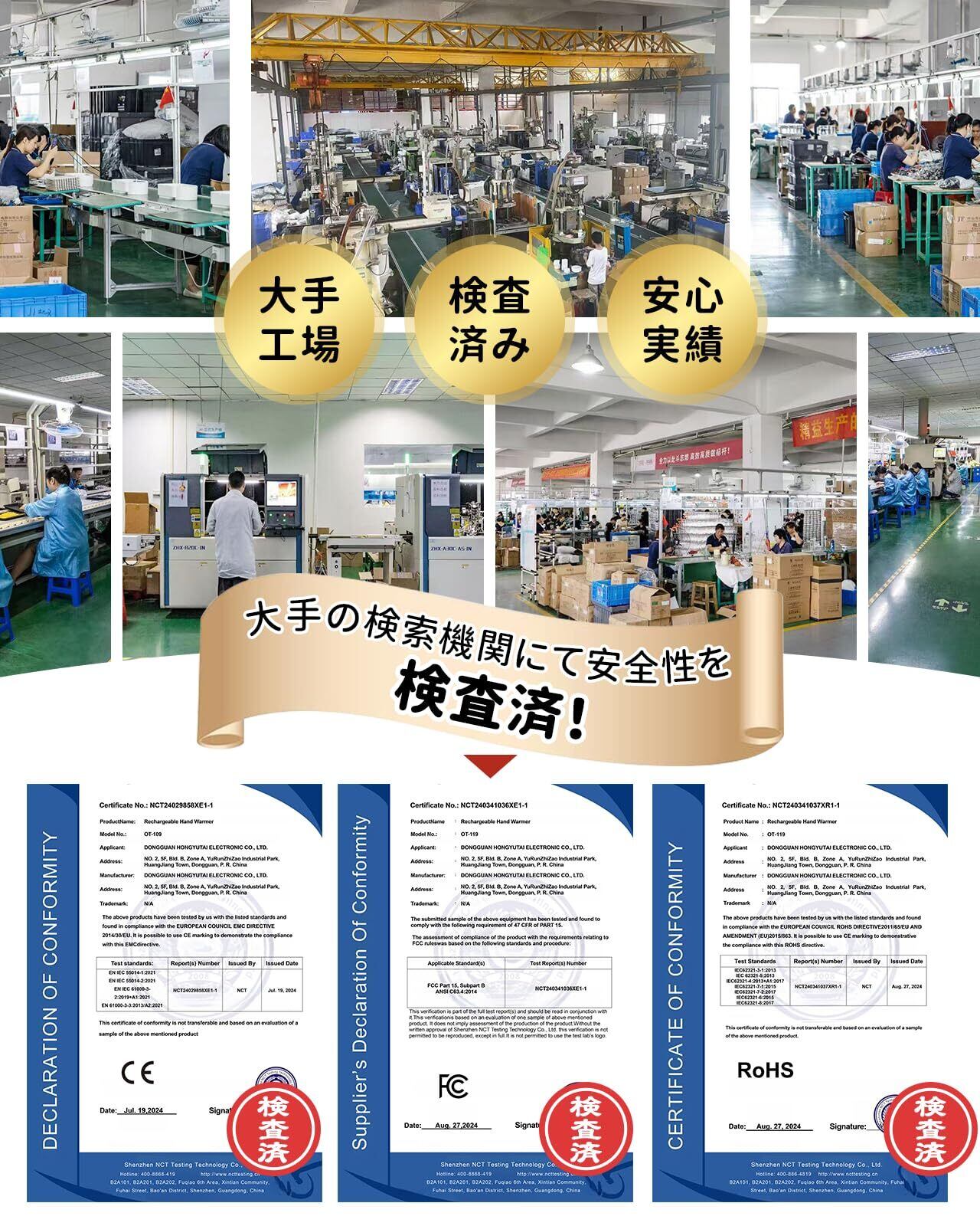 【多重な安全保護・1年間サービス】HAGOOGIの工場は、過去3年だけで充電式 カイロを100万台超製造してきました。高い品質基準をするために、すべての製品は、開発段階から量産まで、HAGOOGI 専門的な経験によってサポートされ、徹底的にテストされています。充電カイロはPSE認証済みで、過熱防止や過充電防止などの6つ安全機能を搭載しています。過電流・過充電による故障や、温度の上がりすぎを心配する必要はありません。さらに購入後1年間のメーカー付き。万が一初期不良や不具合があれば、迅速に対応いたします。