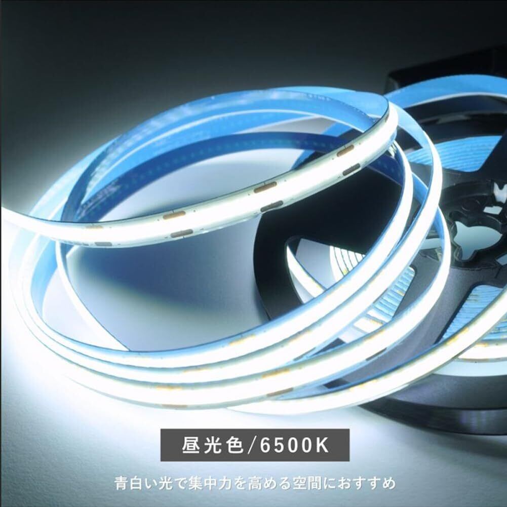 「320LEDs/mという高密度のLEDを使用しているため、明るさと均一な光の拡散が特徴です。昼白色の6000Kは、自然光に近い清々しい印象を与え、作業スペースやリビングなど幅広いエリアで活用できます。」