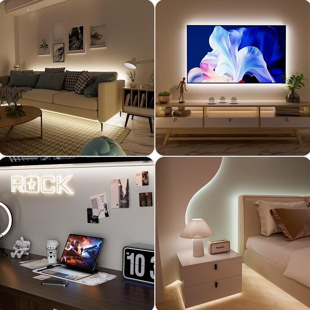 【工事不要&カスタマイズ自由】強力両面テープで10秒で貼れる!ハサミでカットポイントに沿ってカットでき、曲げ加工OKの柔軟設計、DIY初心者でも手軽にインテリア照明を実現。キッチン、キャビネット、寝室、階段、鏡、廊下、DIYバックライト、テーブルランプ、おもちゃのランプ、DIY照明、特殊照明などにオススメ!
