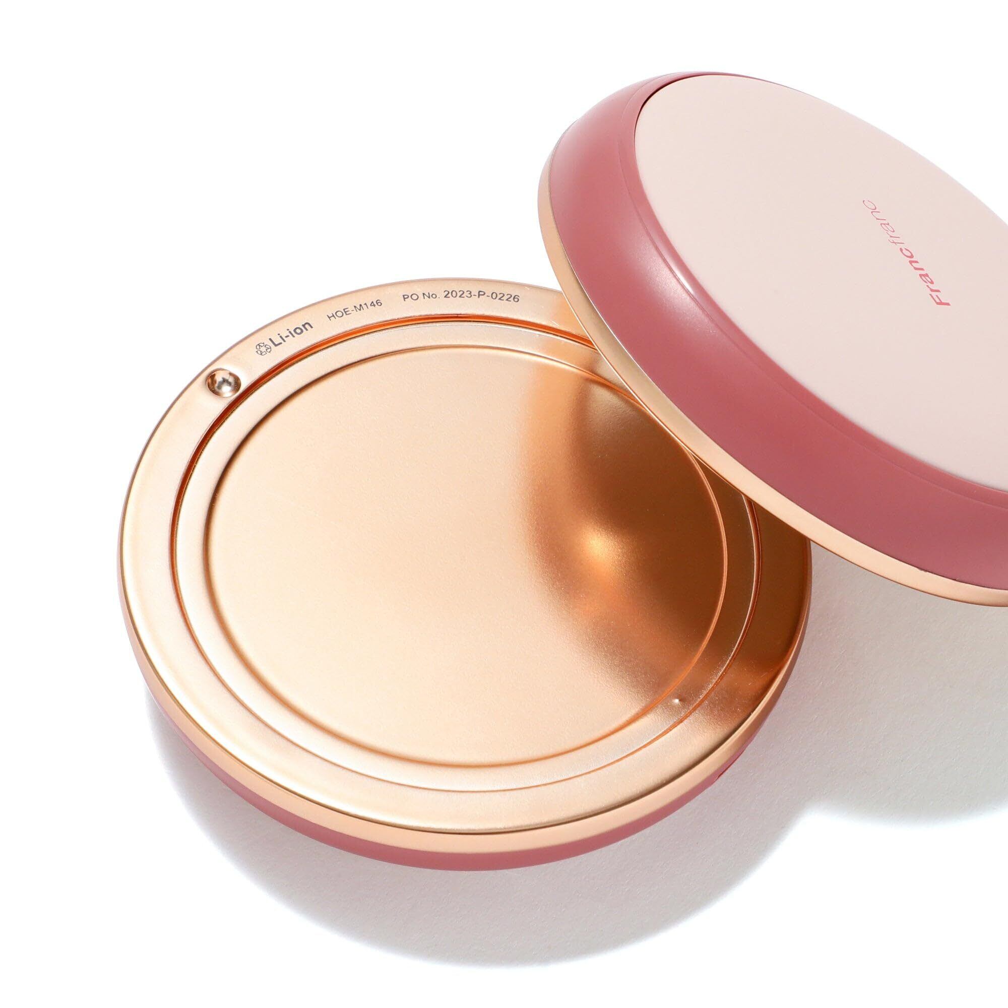 ダブルクリックで電源を入れられるため、バッグなどでの誤作動を防止します。2つに分かれた片方にはミラーが付いており、お出かけの際の身だしなみチェックにも使用できます。持ち運びに便利な巾着タイプの収納バッグ付きです。