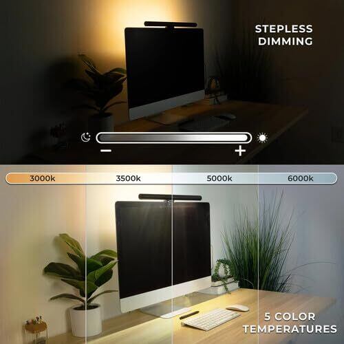 「このモニターライトは、色温度を4段階で調整可能。暖かい色合いからクールな明るさまで、シーンに合わせて自在に切り替えられます。PC作業や読書、ゲームなど、さまざまな用途で最適な明るさを実現します。」
