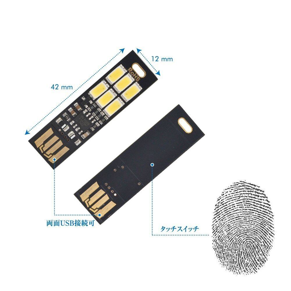 USB LEDライト タッチスイッチ式無段階調光 両面USB接続6LEDライト 電球色5枚セット