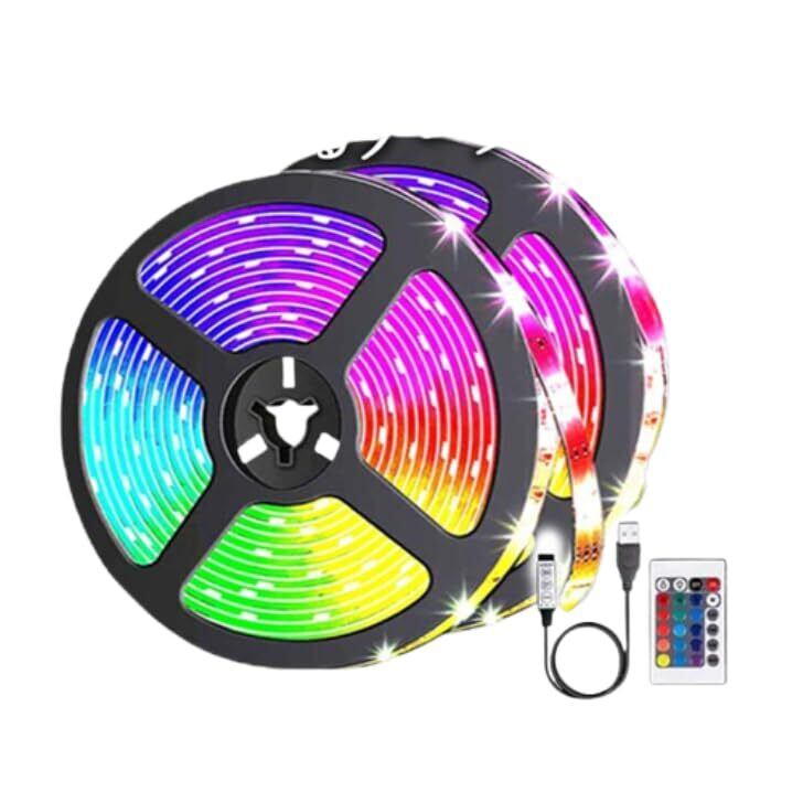 「お部屋をおしゃれに彩る『テープライト』が新登場!5mの長さを持つこのUSBライトは、防水仕様で安心して屋外でもご使用いただけます。リモコン付きで、シーンに合わせて自由に色や明るさを調整できるため、リビングや寝室、パーティーシーンに最適です。」