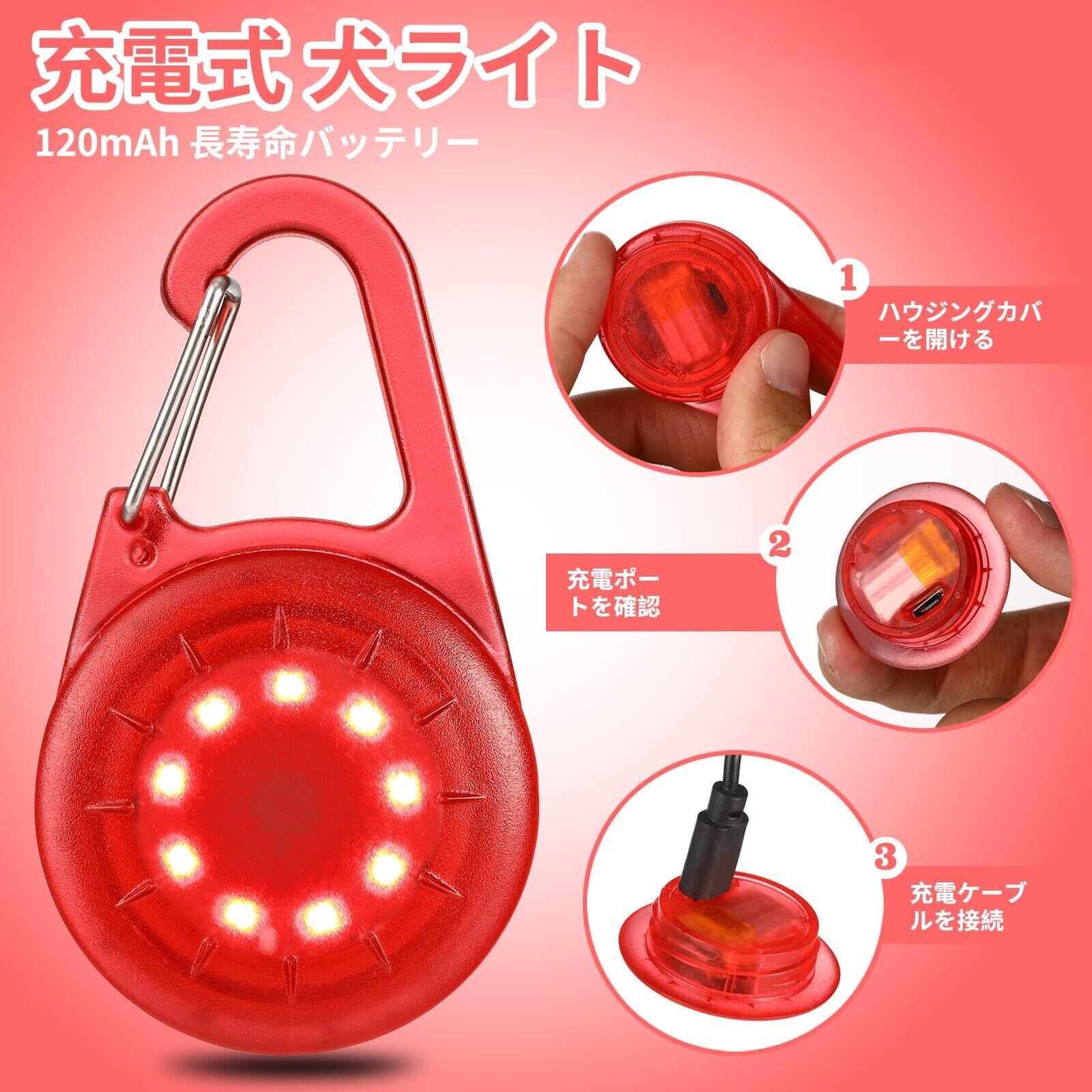 Taximi 2個セット IP68 防水 犬 散歩 ライト 充電式 軽量 犬 ペンダントライト 犬 光る首輪 小型犬 中型犬 大型犬 に対応 夜間安全 LED ペット 散歩 ライト