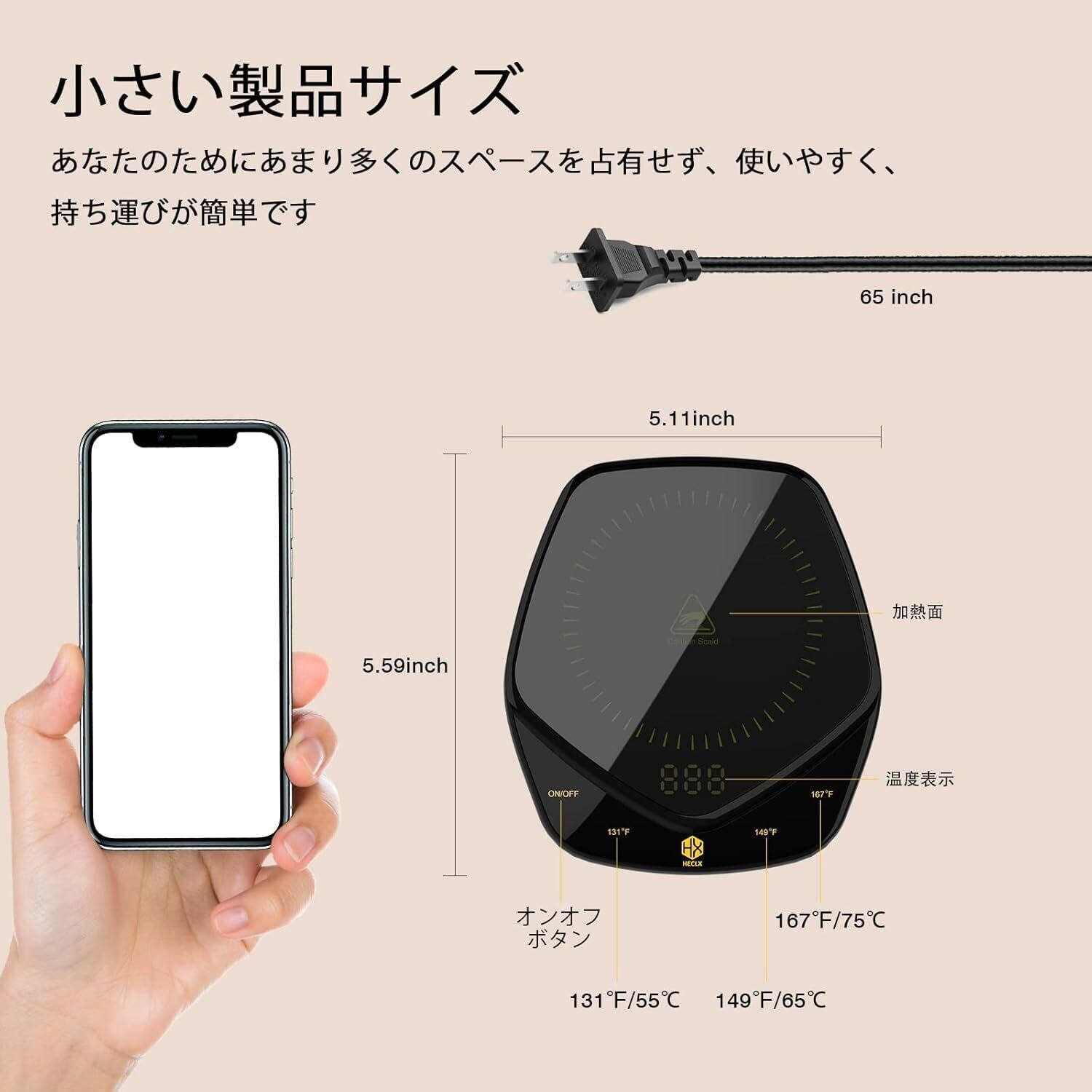 「コーヒーだけでなく、紅茶やスープ、温かいミルクまで幅広く対応。高品質な素材を採用しており、さまざまなマグやカップと組み合わせて使うことができます。あなたのお好きな飲み物を、いつでも温かい状態で楽しめます!」