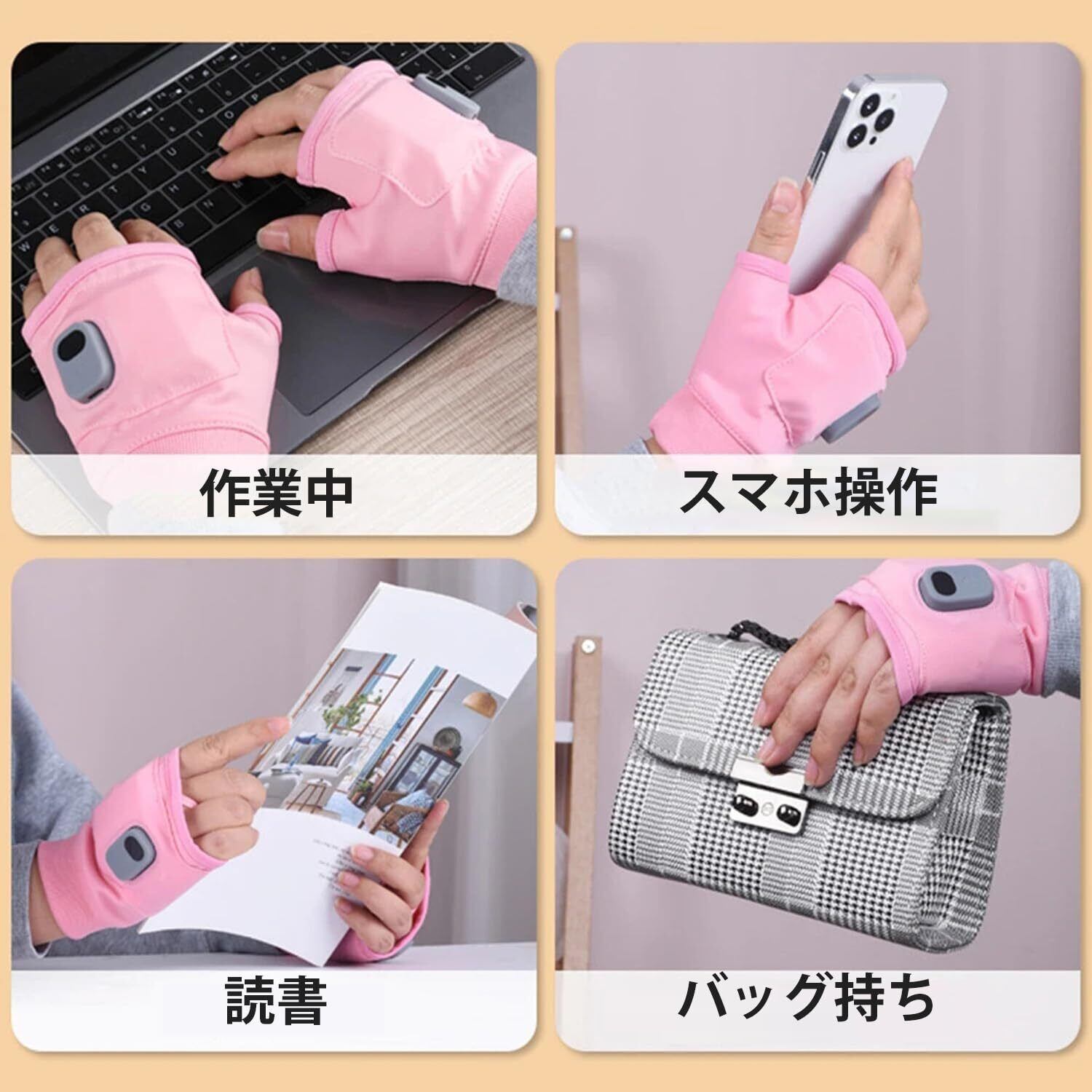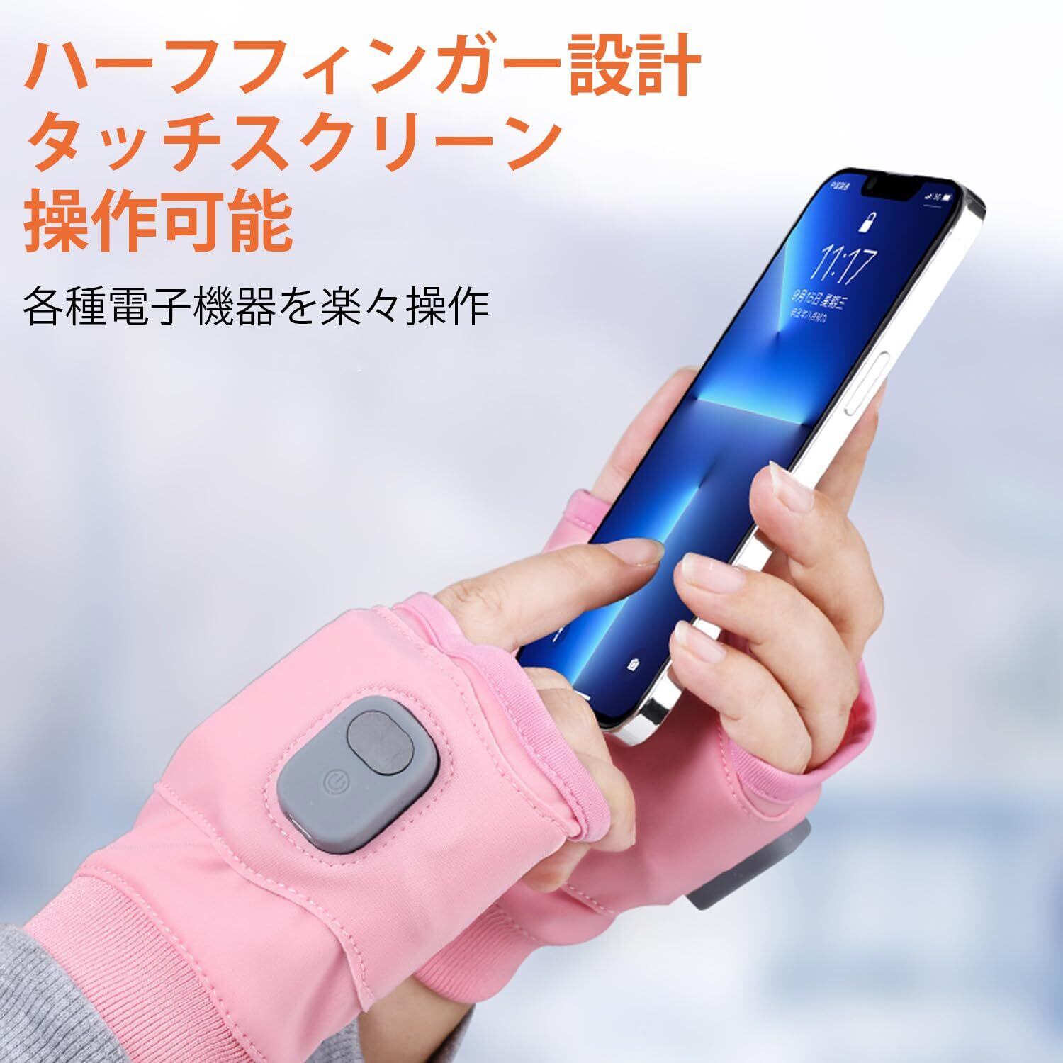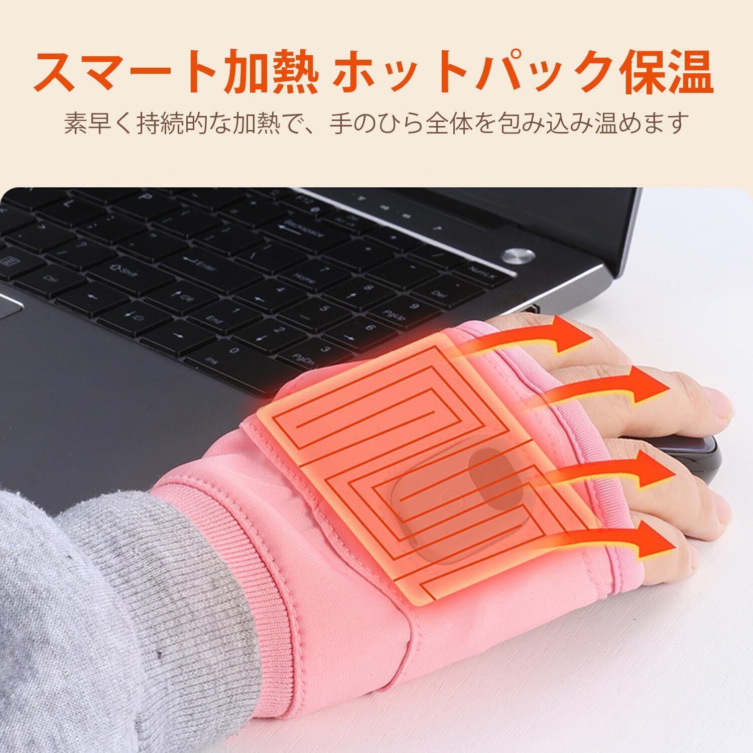 【快適で実用的なデザイン】この電気手袋は360°ラップアラウンド型の発熱体を備え、手のひら、指、手の甲まで均一に熱を分散します。ハーフフィンガーデザインにより、指を自由に動かしてタイピングやスマートフォンの操作などが行え、多機能性を提供しながらも暖かさを損ないません。