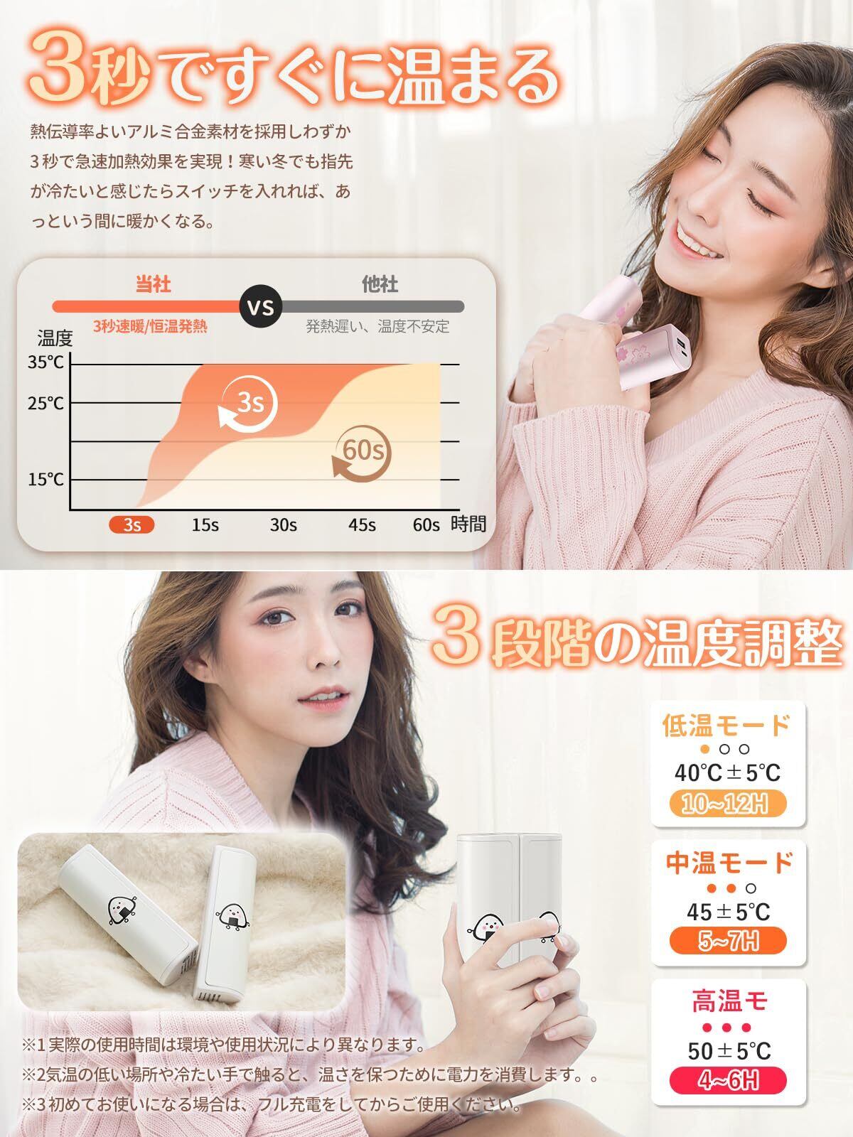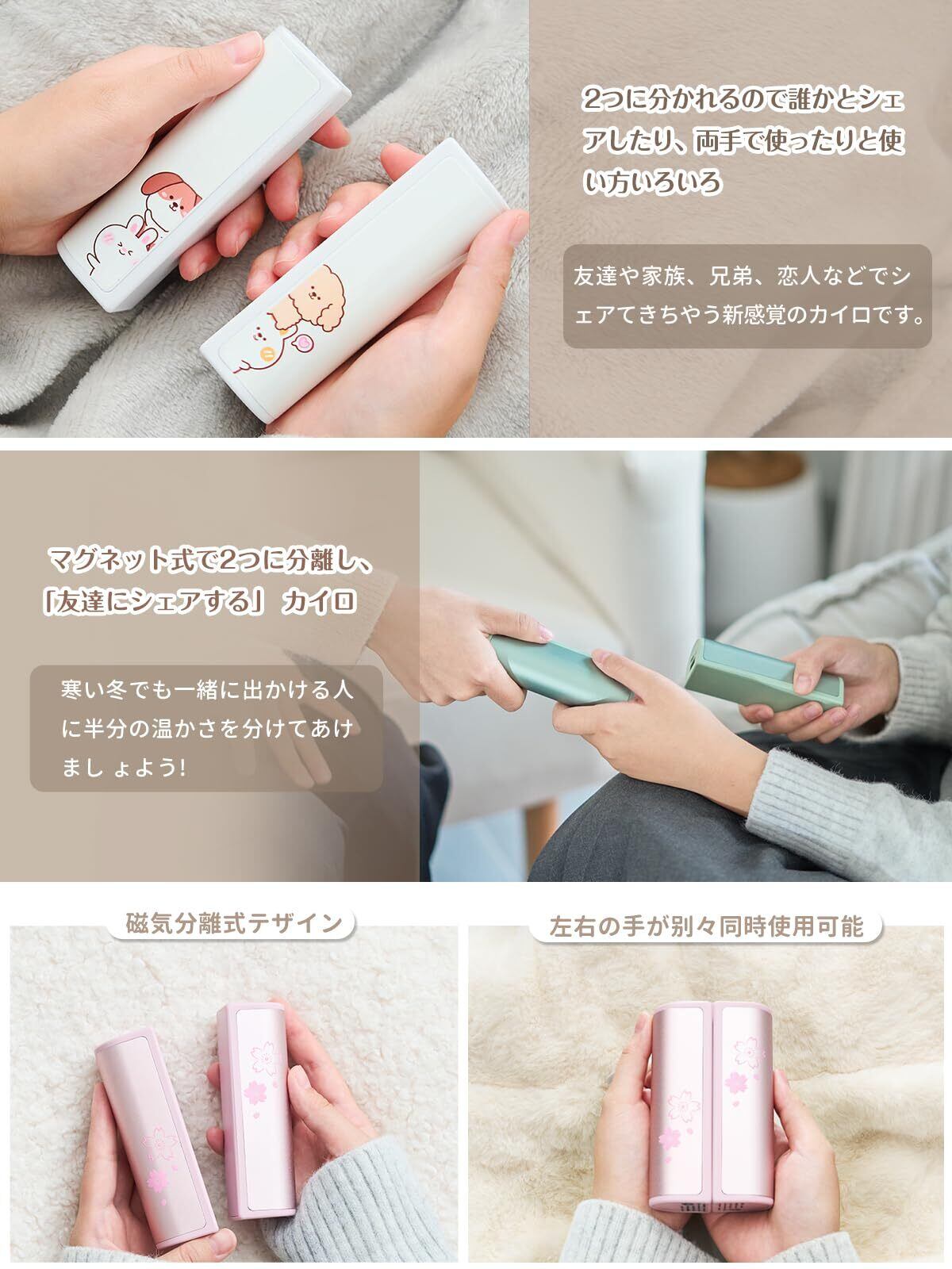 【マグネット分離式・5V/2A急速充電】革新的なマグネット式で2つに分離し、「友達にシェアする」充電式カイロを実現!友達や家族、兄弟、恋人などでシェアてきちやう新感觉のカイロです。ひとつは手を温めながら、もうひとつは他の機器を充電することも可能です。また、外出時に左右の手を别々に暖められるほか、片方だけ持ち歩いて荷物がかさばっても握りやすい充電式カイロ。両手を同時に温められますので、寒い冬を快適に過ごせる効率が、さらにアップ!さらに、電子カイロは2つのType-C入力ポートを持つケーブルが付属し、2台のカイロを同時に充電でき、充電時間が半分に短縮!