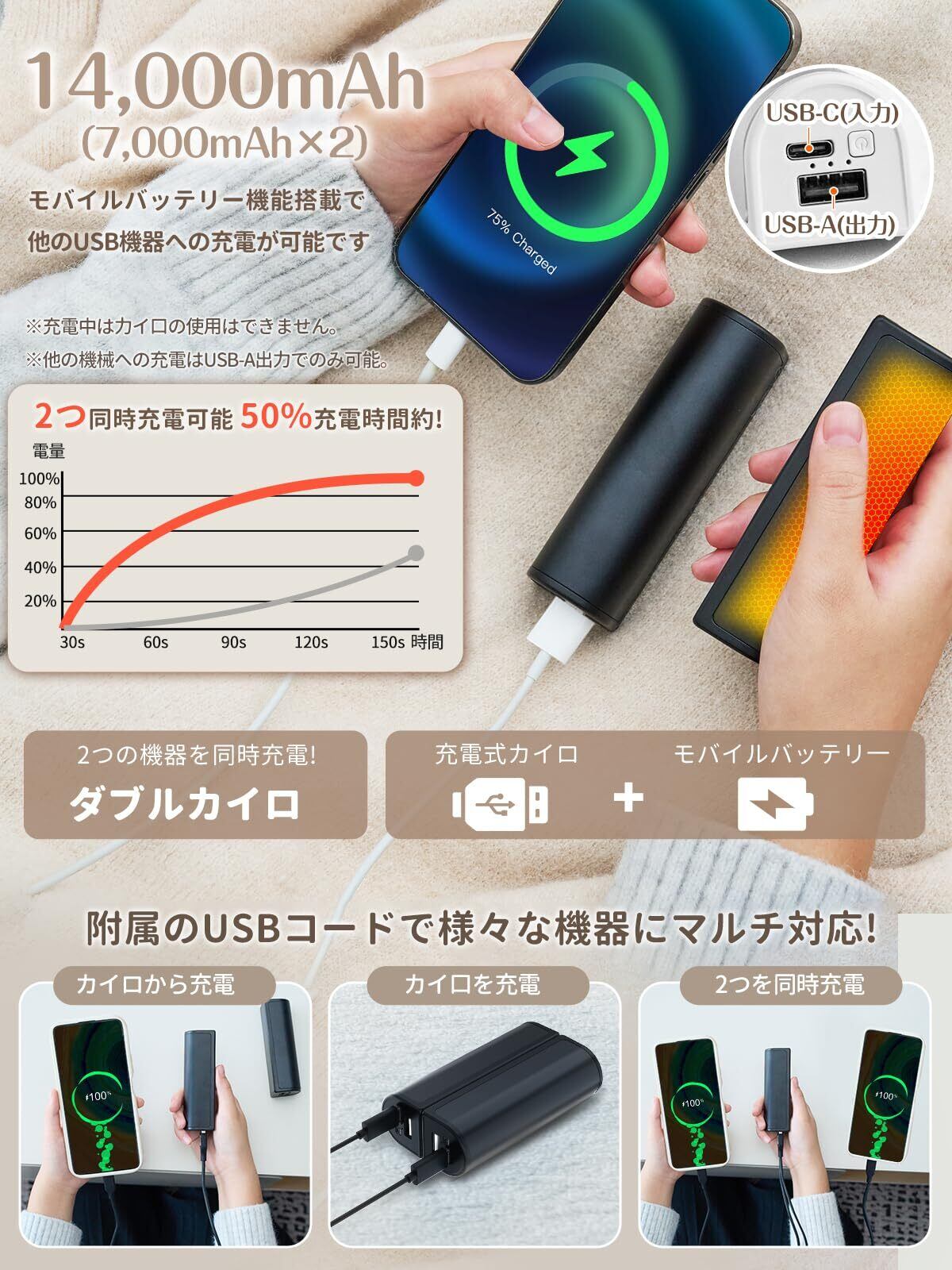 【日本限定】SUKITEN 充電式カイロ 14,000mAh大容量 3秒急速発熱 3段階温度調節 全面発熱 モバイルバッテリー機能 電気カイロ 超軽量 マグネット分離式 5V/2A急速充電 便利グッズ 持ち運びやすい PSE認証済み 寒さ対策 旅行 アウトドア 出張 通勤 プレゼント 2個セット