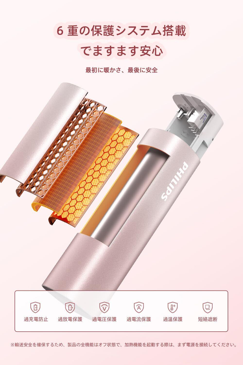 「電源を入れた瞬間から、わずか3秒で温まる急速加熱機能を搭載。寒い日のお出かけや、オフィスでの作業中にも、瞬時に心地よい温もりを提供します!」