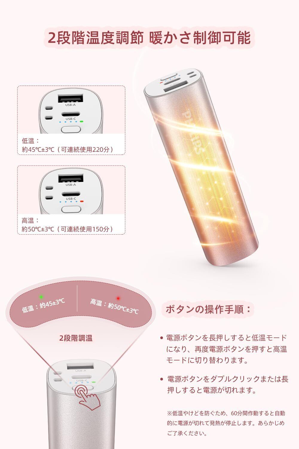 **Philips(フィリップス) 充電式カイロ 360°全方位発熱 / 3秒速暖 / 2段階温度調節 小型 軽量 usb カイロ 5000mAh モバイルバッテリー機能 電気ハンドウォーマー 携帯便利 USB充電式 寒さ対策/省エネ/PSE認証済 防寒グッズ プレゼント ピンク DLP2137CP**