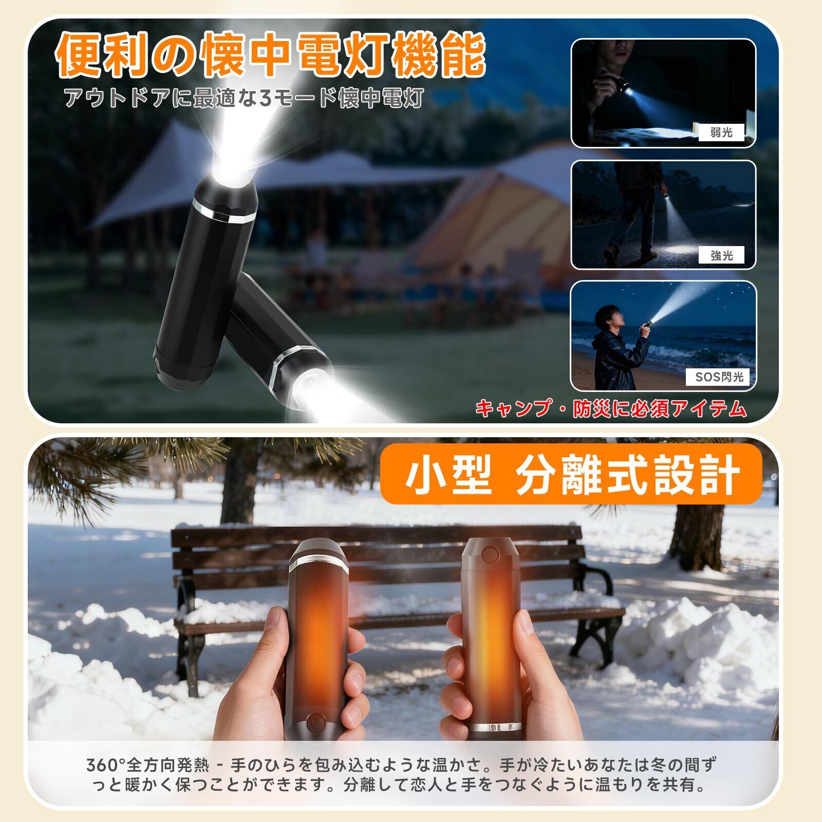**【PSE認証済&正規品】充電式カイロ 分離式設計 3秒急速発熱 3階段 温度調節 電気カイロ 懐中電灯 3-in-1多機能 大容量 16時間連続発熱可能 小型 超軽量 持ち運びやすい 寒さ対策 防寒グッズ 5V/2A急速充電 通勤通学用 アウトドア 旅行 クリスマスプレゼント/冬の贈り物**
