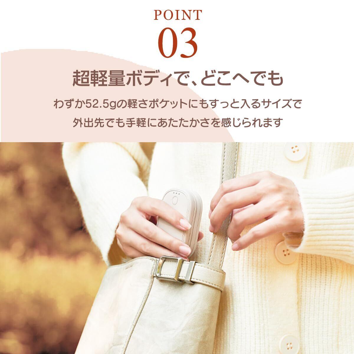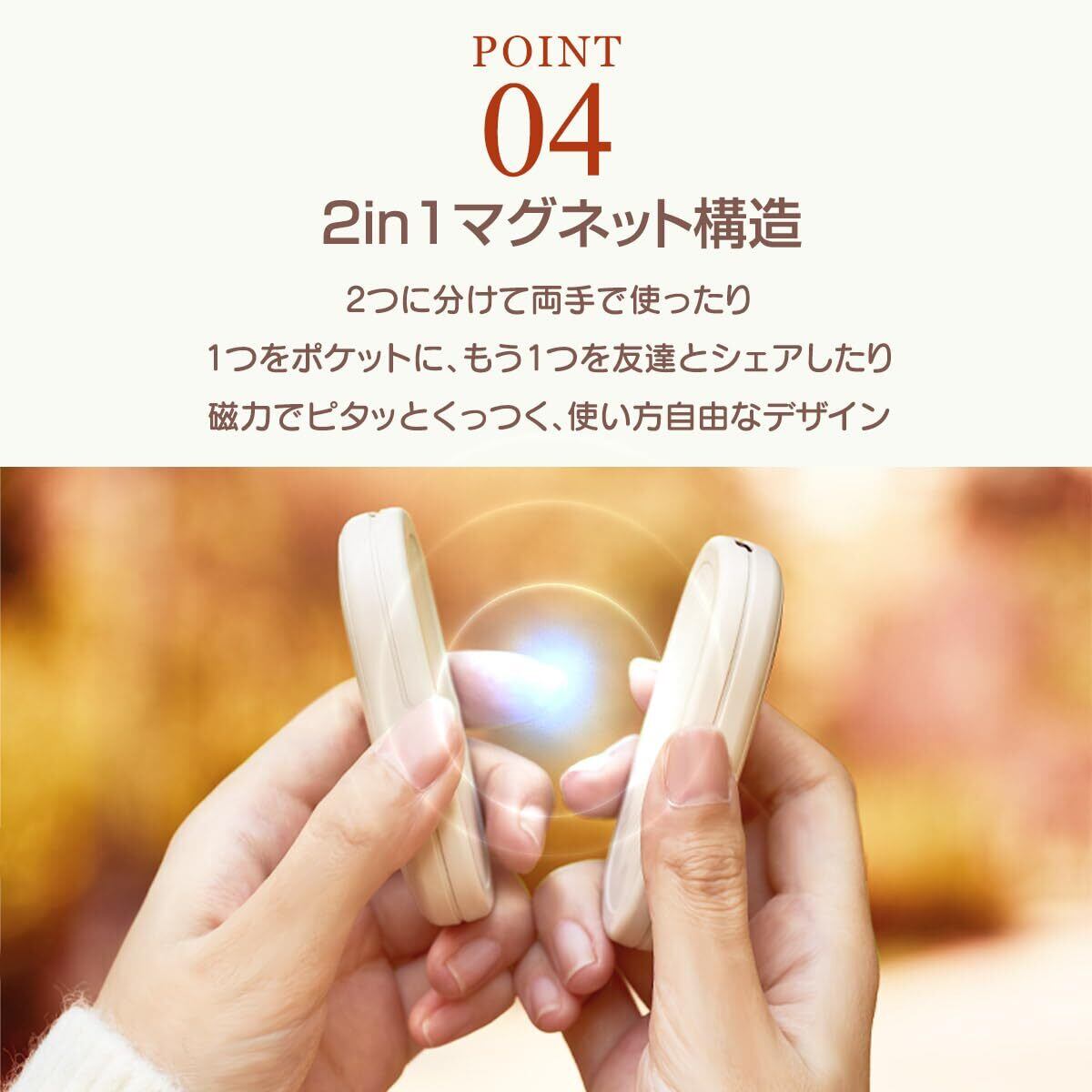 「本製品はマグネット機能を搭載しているため、コートのポケットやバッグの内側にくっつけておくことができます。持ち運びが一層便利になり、寒い季節の外出も快適にサポートします。」
