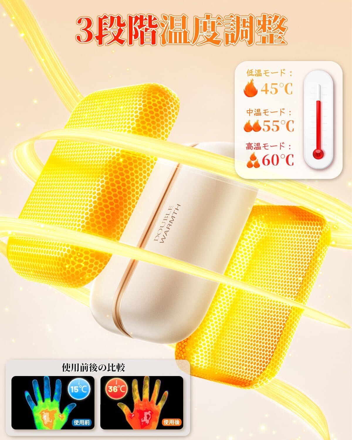 ✨【2 年間の安心付き!贈り物に最適充電式カイロ】 充電式カイロ、自分自身や家族、取引先の皆様にプレゼントするにぴったりです。※製品をご使用中、ご不明点や不具合がございましたら、お手数ですがメールにてまでご連絡ください。迅速に返品・返金の対応をさせていただきます。お客様のご満足をお約束いたします。(パッケージ内容:充電式カイロ本体 ×1、USB-C 2in1 ケーブル ×1、取扱説明書 ×1。)