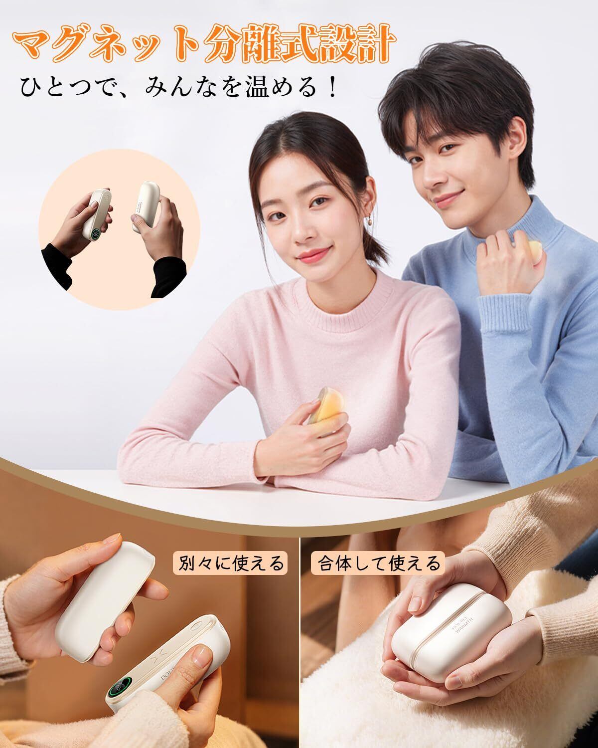 【人気限定】充電式カイロ 360°全方位発熱 2秒急速発熱 3階段温度調節(45-60℃) モバイルバッテリー機能 大容量 10000mAh LEDデジタル 22時間連続発熱可能 【超軽量小型 マグネット 分離式設計】 Type-C急速充電 操作簡単 持ち運び 繰り返し利用 冬/通勤/通学/旅行/デスクワークなどに適用 クリスマスプレゼン 日本語説明書(ホワイト)