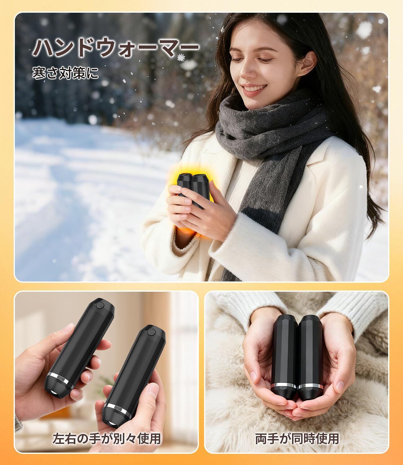 充電式カイロ【新型磁気式&分離式設計&360°全面発熱】電気カイロ 小型 超軽量 モバイルバッテリー機能 大容量 10000mAh ハンドウォーマー 3段階温度調節 急速発熱 電気あんか LEDライト付き 寒さ対策 あったかグッズ クリスマスプレゼント(ブラック)