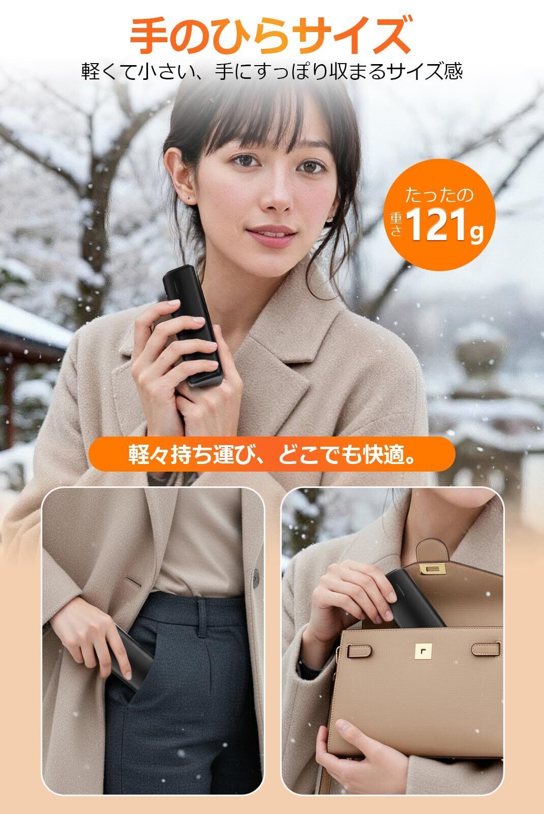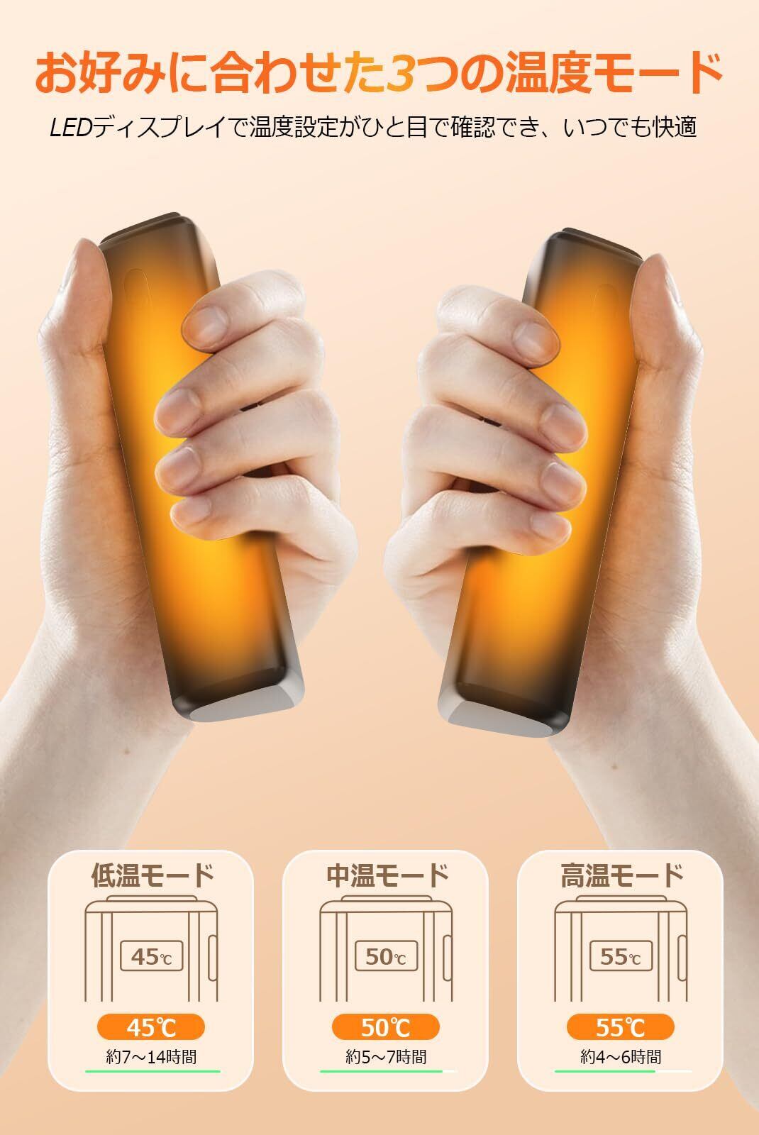 「冬の寒さからあなたをしっかり守る『充電式カイロ』が登場!大容量10000mAhバッテリーを搭載し、急速発熱機能を備えたこのカイロは、寒い季節に欠かせないアイテムです!」
