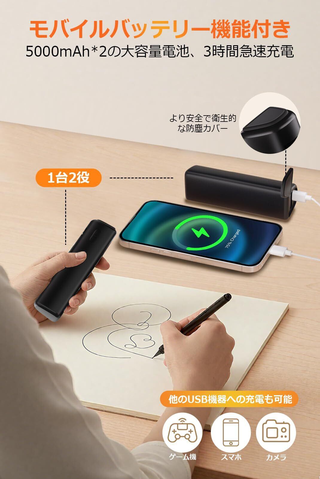 - モバイルバッテリー機能付きで便利!
