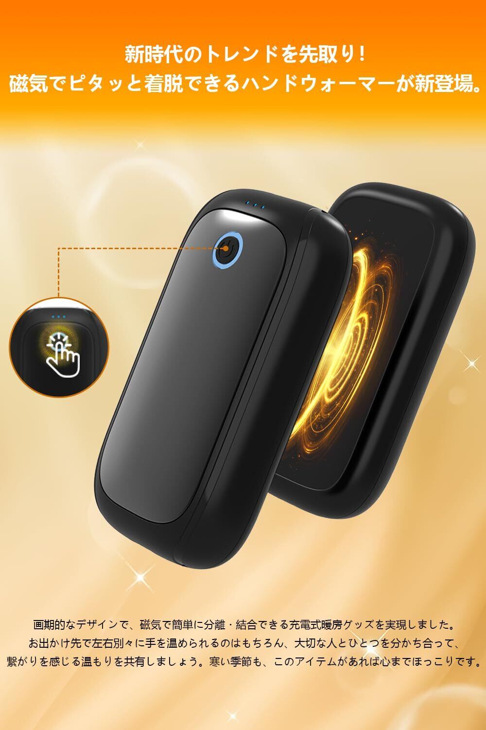 「寒い季節の必需品『充電式カイロ』が新たに登場!新型磁気式・分離式のデザインで、温かさをしっかりと届ける5000mAhのバッテリーを搭載しています!」